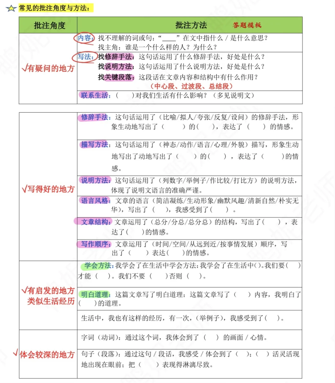 🔸批注是语文学习中非常重要的阅读策略,在阅读时,把自己的疑惑、思考、感想、启示……随手批注在书中空白的地方,不仅能加深记忆,帮助我们更深入地理解文章内容,还有助于养成积极思考的习惯。