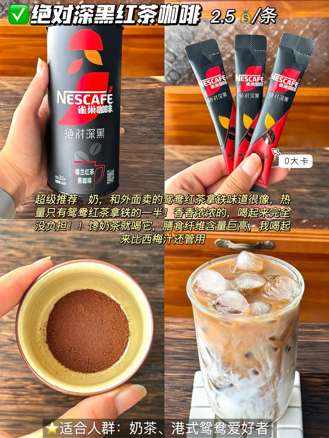 ⭐️口味:超级推荐➕奶,和外面卖的鸳鸯红茶拿铁味道很像,热量只有鸳鸯红茶拿铁的一半!兑出来比有些奶茶还好喝,香香浓浓的,但是喝起来完全没负担!!