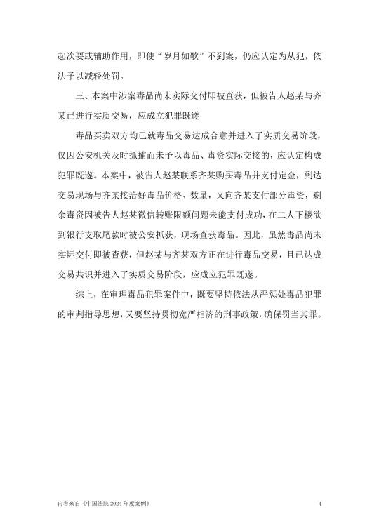 毒品未实际交付被查获,如何认定犯罪形态? 你是否好奇过,如果毒品在交易过程中被警方查获,算不算犯罪既遂呢?最近,河北省唐山市中级人民法院就审理了一起这样的贩卖毒品案,让我们一起来看看法院是如何认定的吧! 案件回顾: 被告人赵某受微信好友“岁月如歌”的委托,前往唐山市丰润区找齐某购买毒品。 在支付了定金和部分毒资后,赵某与齐某在交易现场被警方当场抓获,并查获了毒品。 虽然毒品尚未实际交付给“岁月如歌”,但法院最终还是认定赵某构成了贩卖毒品罪的既遂。 案件焦点: 这起案件的焦点在于,毒品尚未实际交付即被查获,如何认定犯罪形态?赵某在共同犯罪中的地位如何? 法院裁判要旨: 法院经审理认为,赵某明知“岁月如歌”是为了贩卖毒品而购买,仍然帮助其联系购买并支付毒资,已经构成了贩卖毒品罪的共犯。 尽管在交易过程中被警方查获,毒品尚未实际交付,但赵某与齐某已经就毒品交易达成了合意,并进入了实质交易阶段。 赵某不仅联系了卖家,还支付了定金和部分毒资,对交易的完成起到了帮助作用。 因此,法院认定赵某的行为已经构成了犯罪既遂。 同时,法院还指出,赵某在共同犯罪中起次要、辅助作用,系从犯,依法予以减轻处罚。 但由于赵某是累犯,依法应当从重处罚。 综合考虑各种因素后,法院最终判处赵某有期徒刑六年七个月,并处罚金人民币1万元。 法官后语: 法官在案件后语中强调,明知他人实施毒品犯罪而为其居间介绍、代购代卖的,无论是否牟利,都应以相关毒品犯罪的共犯论处。 对于毒品犯罪案件,既要坚持依法从严惩处,又要贯彻宽严相济的刑事政策。 启示与反思: 这起案件给我们敲响了警钟。毒品犯罪是严重的社会问题,任何形式的参与都可能构成犯罪。 在交易过程中,即使毒品尚未实际交付,只要双方已经达成了交易合意并进入了实质交易阶段,就可能被认定为犯罪既遂。 因此,我们一定要远离毒品,不参与任何形式的毒品交易活动。 同时,这起案件也提醒我们,在共同犯罪中,即使只是起次要或辅助作用,也不能掉以轻心。一旦构成犯罪,同样会受到法律的严惩。 毒品交易未遂 法院裁判 犯罪既遂 共同犯罪 远离毒品 交个律师朋友 法律常识 坚决打击犯罪