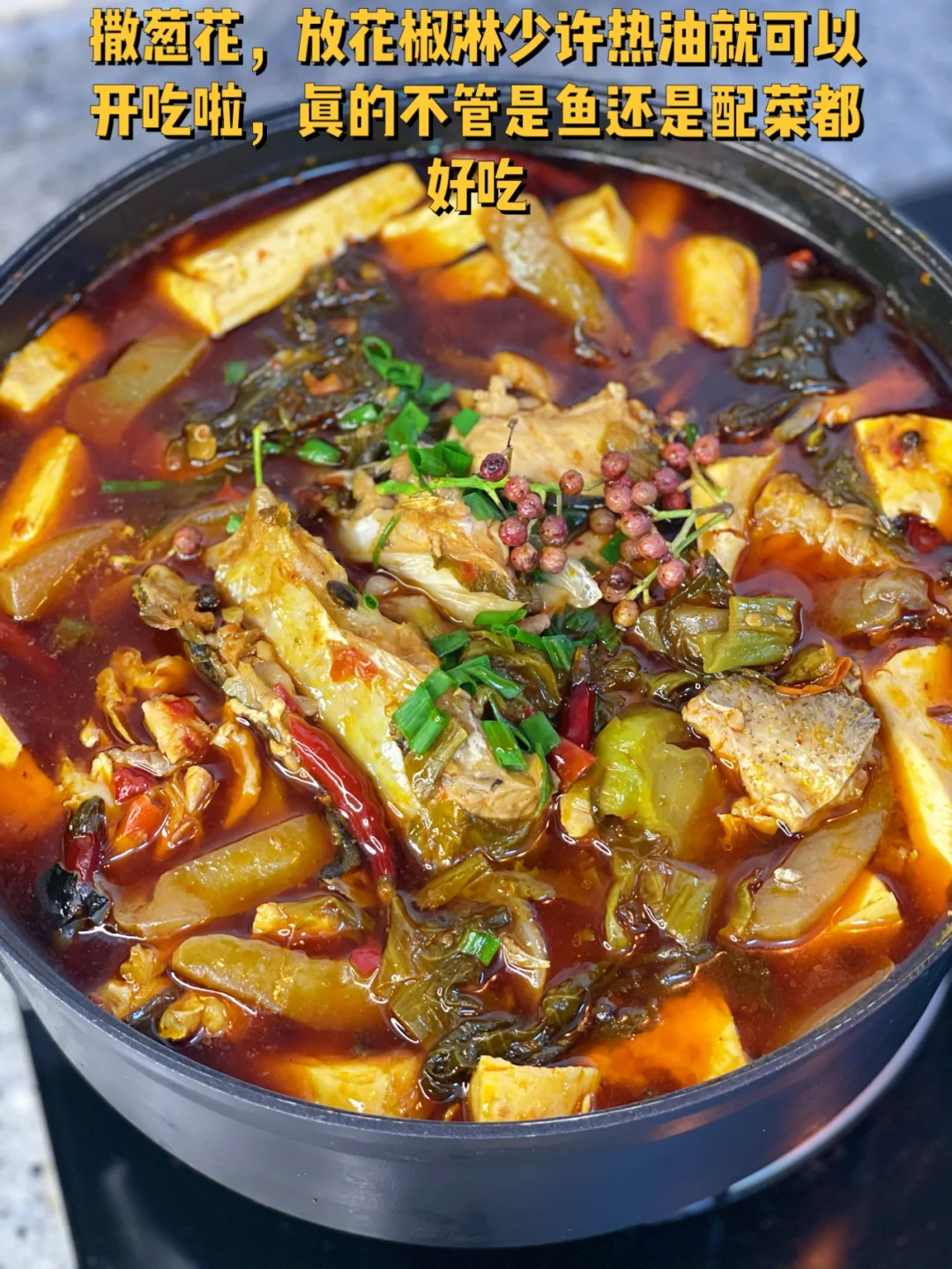 其实这个鱼是打算做一般那种酸菜鱼片的,因为是朋友买的菜等我打开袋子就傻眼了,卖鱼的给剁成一节一节了,于是乎就换成了这种烧法,朋友们吃过都说太辣太开胃太爽,特别豆腐和酸菜,你们回头一定要试试哦
