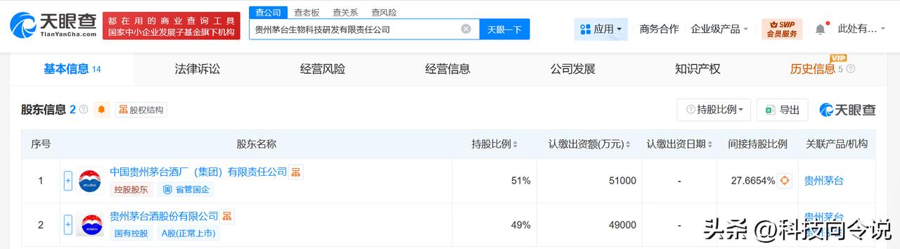 【贵州茅台成立生物科技研发公司注册资本10亿】 天眼查工商信息显示,近日,贵州
