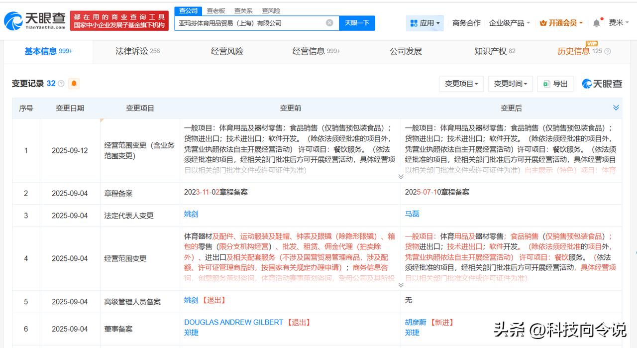 【始祖鸟关联公司近日刚更换董事长始祖鸟关联方近日变更法定代表人始祖鸟曾涉不正