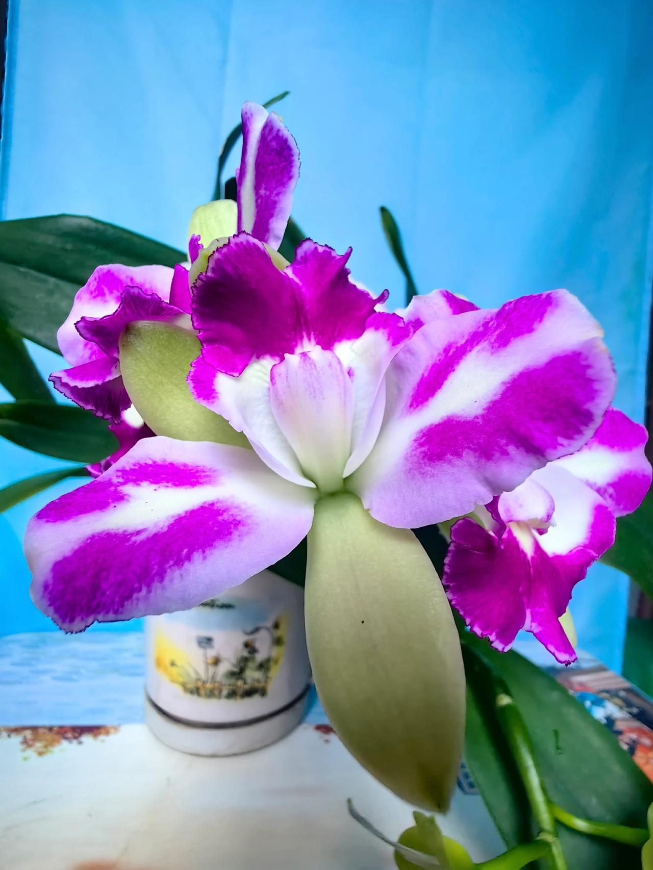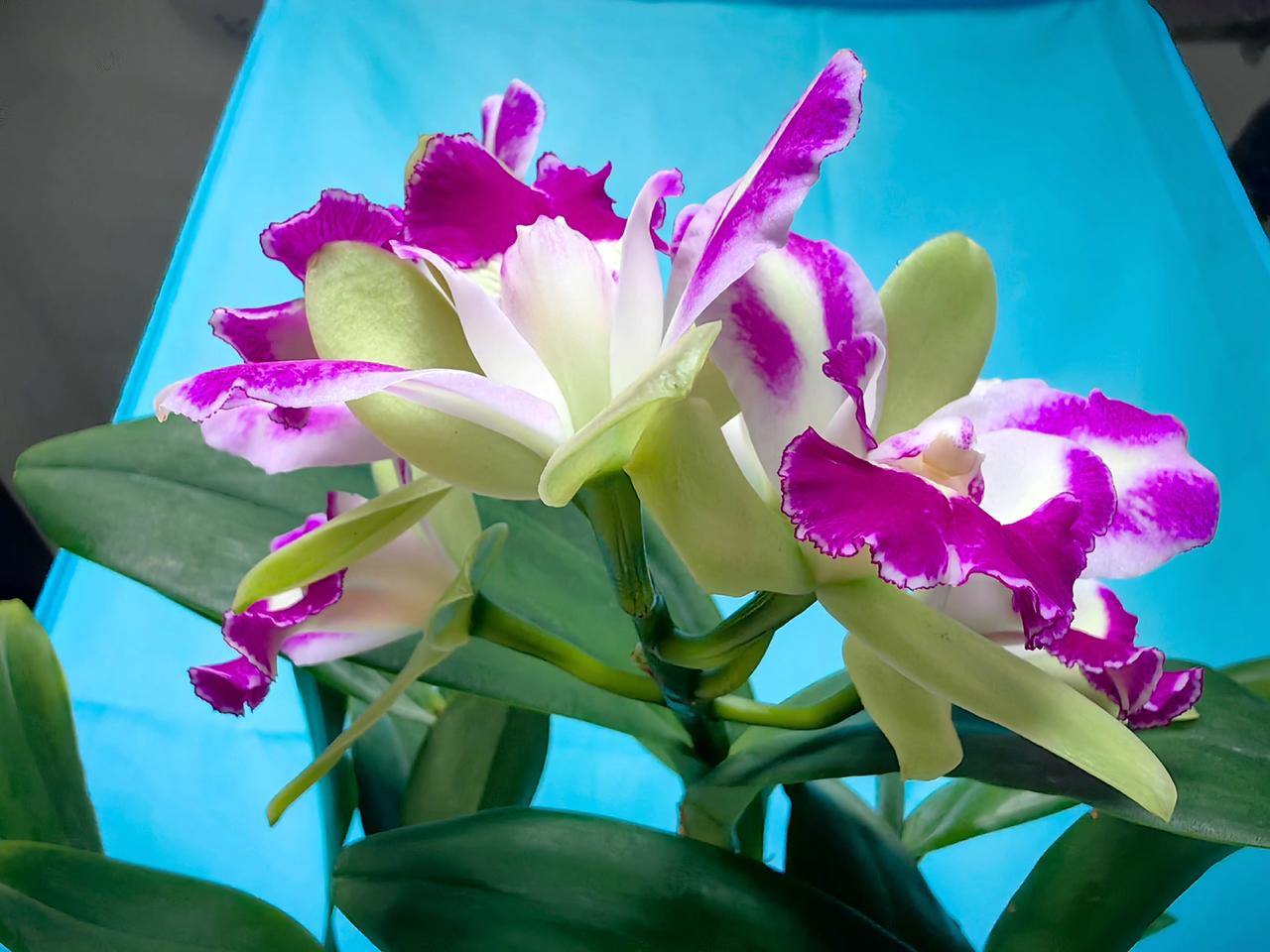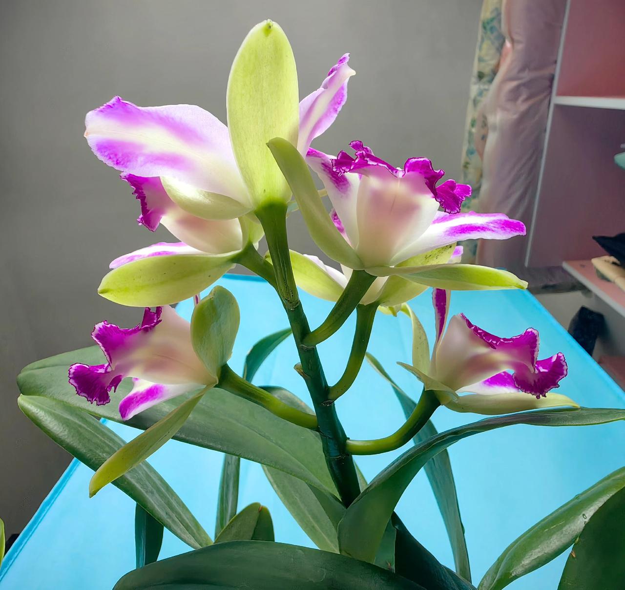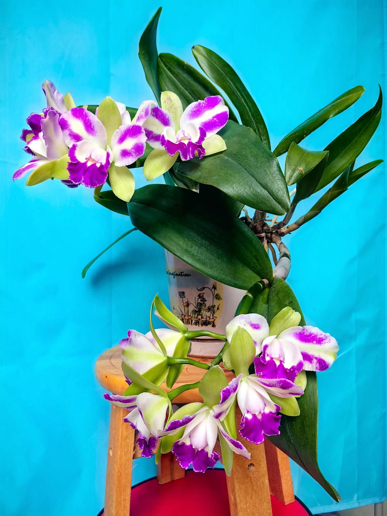 璀璨素颜华。 紫暮霞, 千姿美翼舞飞纱 孔雀翎翅俏枝花 洋兰入苑丽贫舍爱生活爱养花