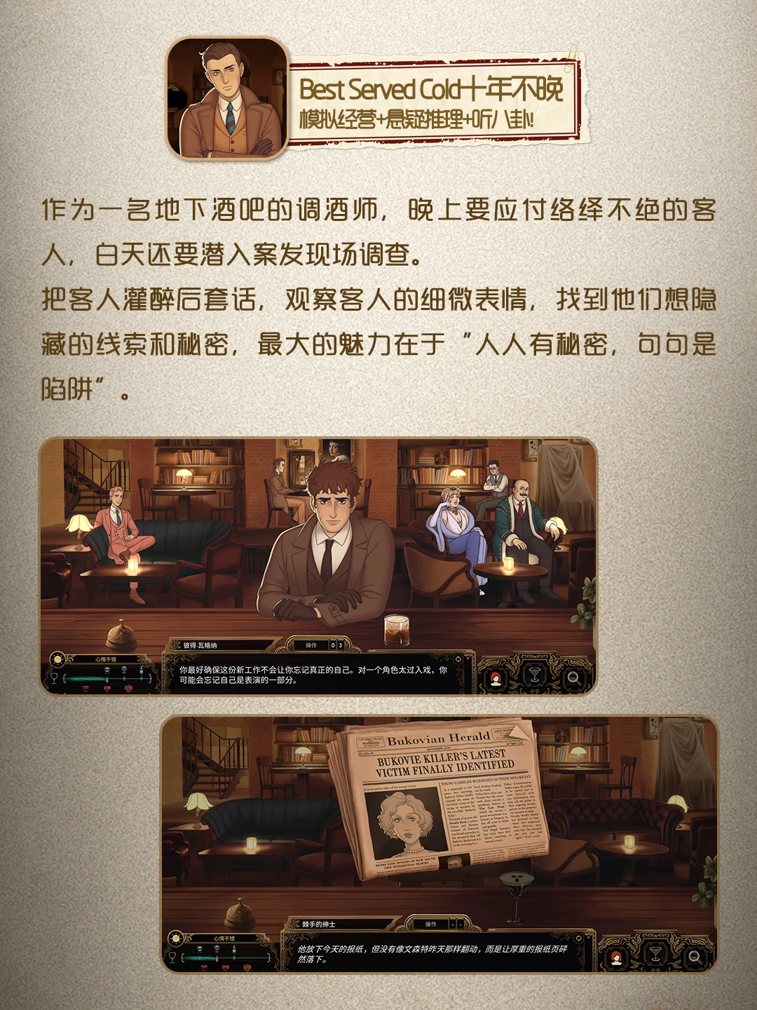 Best Served Cold十年不晚-悬疑推理+经营+听八卦!