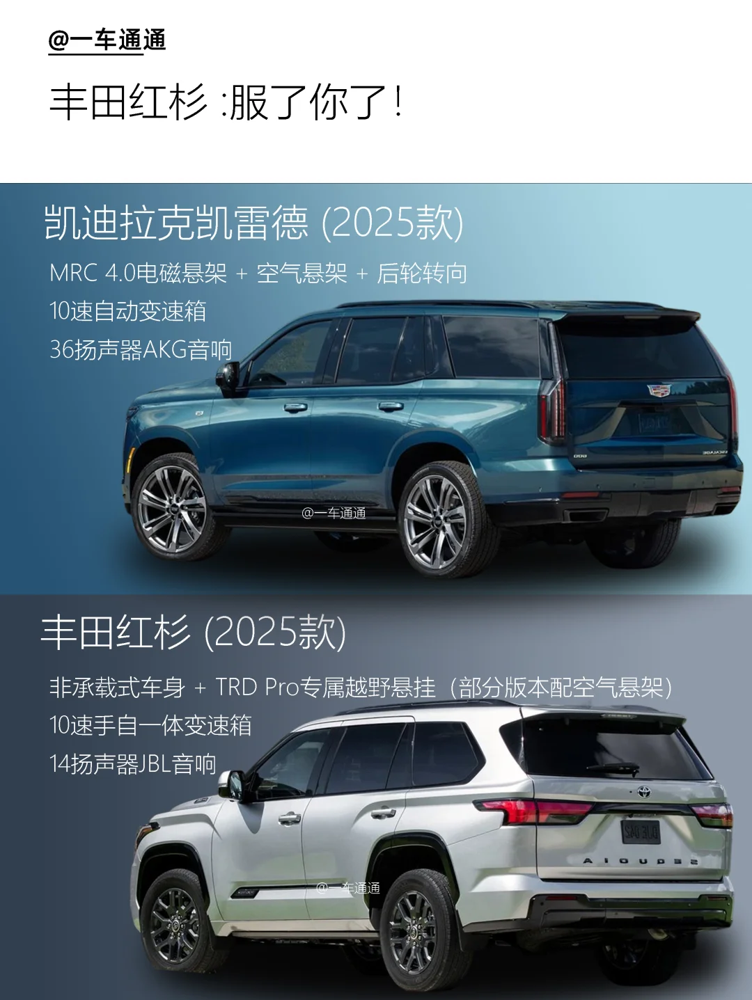 豪华SUV对决 凯迪拉克凯雷德 丰田红杉 美式肌肉车 硬派越野宝藏新车 种草此CAR 我的上头车 汽车 SUV 你选谁?