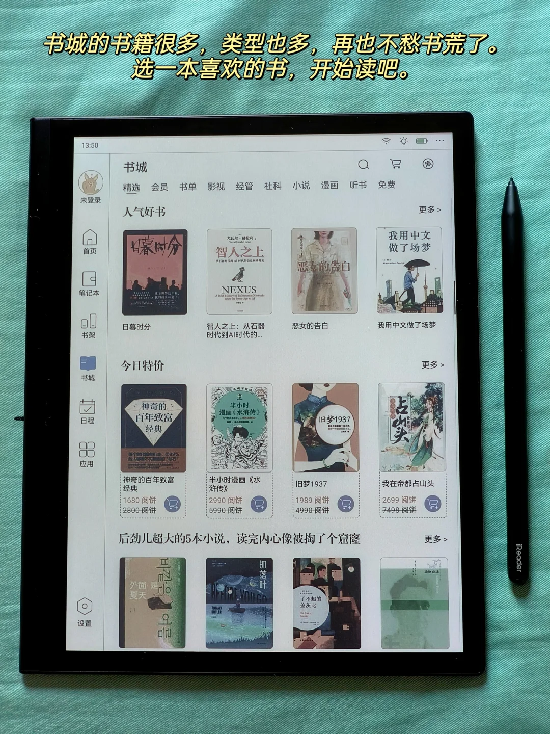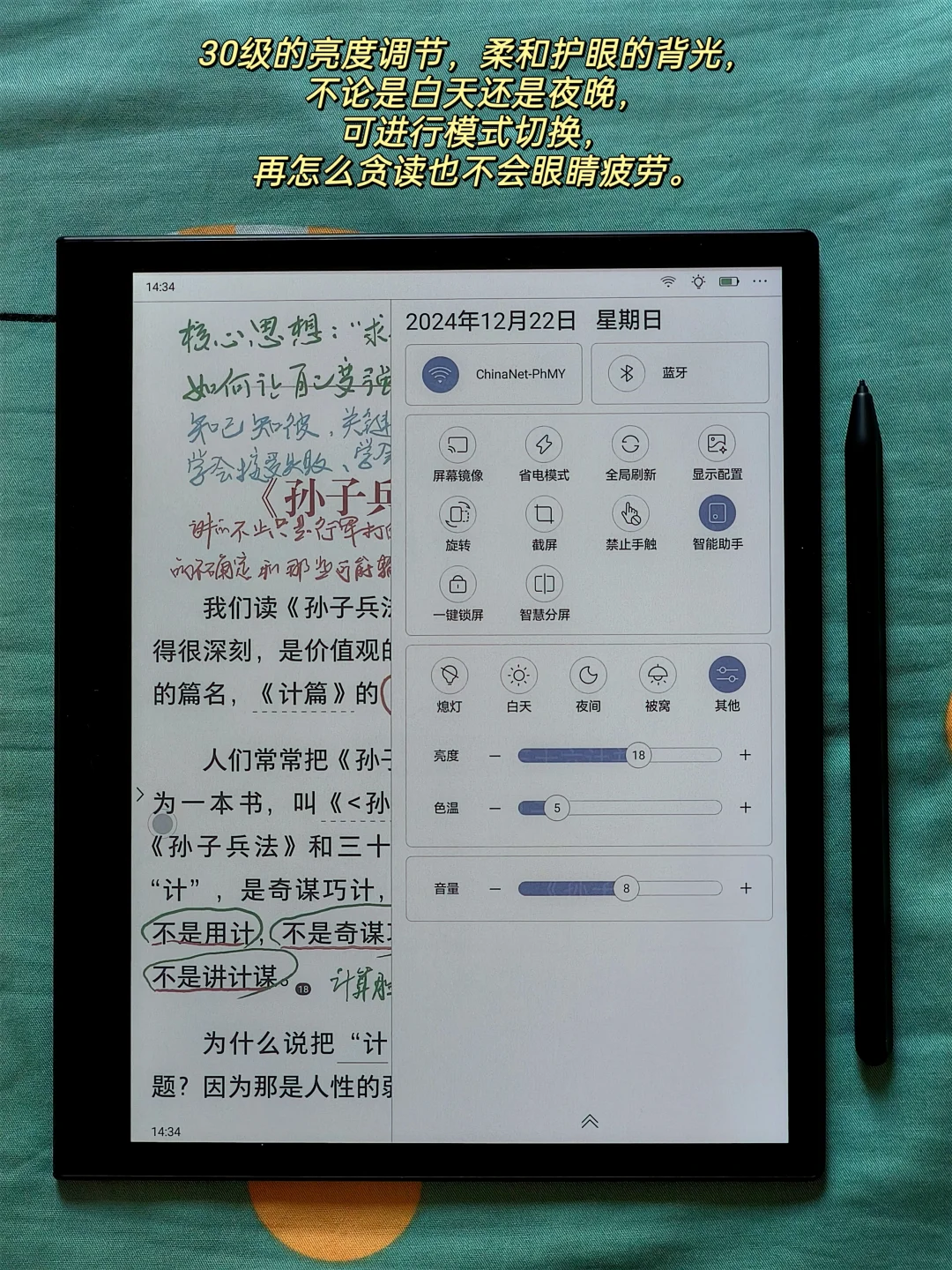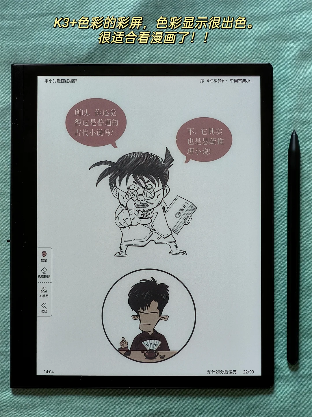 好喜欢自带的电磁笔,是不需要充电的,点到哪里画到哪里写到哪里,流畅的书写得心应手。还有多种颜色笔迹可选择,非常便于边读边做笔记,多色标记,清晰明了。很适合我这种喜欢写写画画的读书人。