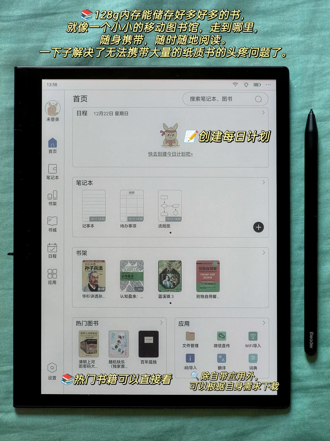 📚128g内存能储存好多好多的书,就像一个小小的移动图书馆,走到哪里,随身携带,随时随地阅读。一下子解决了无法携带大量的纸质书的头疼问题了。