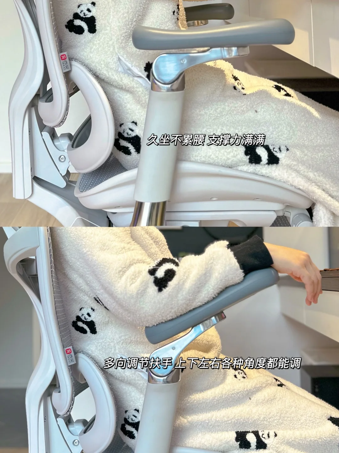 它的6D可调节的扶手我也很喜欢,我家的书桌为了迁就家属194cm的大高个,做的偏高了🤨,这把椅子就可以调节扶手高度跟桌面齐平,胳膊就不用一直悬空着玩电脑了,后仰躺着玩手机也可以调节角度托住手臂,总之可以适应我的各种坐姿!