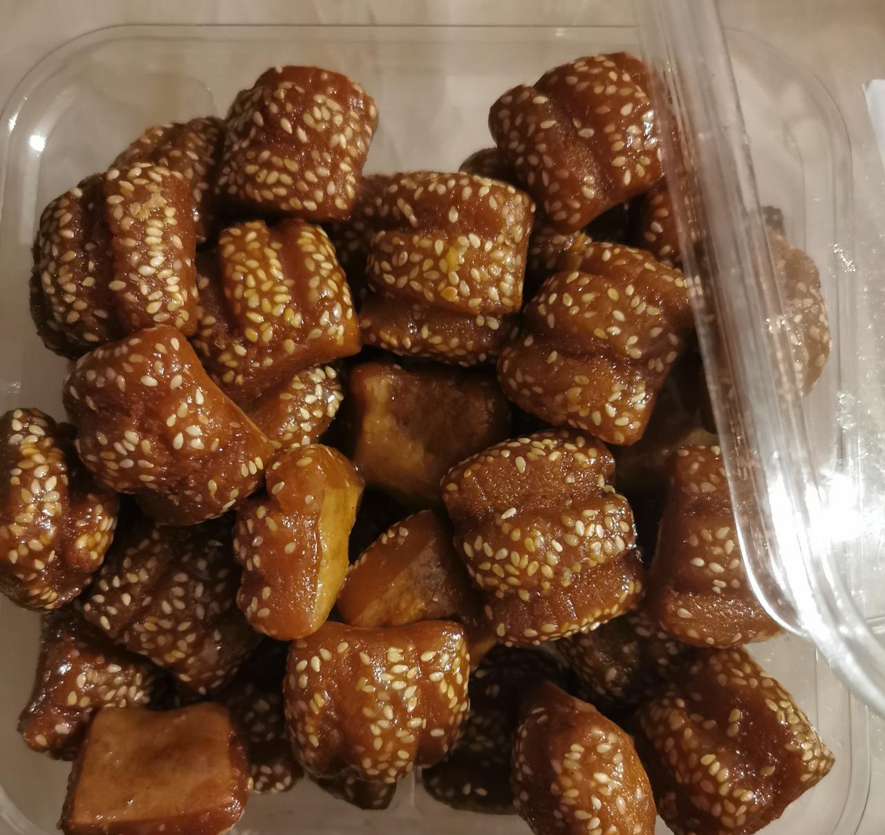 闺女知道我就爱这一口,中午给我送来“甜蜜蜜”! “甜蜜蜜”是我给它起的名,其实这种点心叫“三刀”。 我是50后,记得小时候能吃上几口“三刀”就是逢年过节,平时只能在梦中。 现在生活好了,吃起来鱼不鲜了,肉不香了,但品尝一下“三刀”真还能品出儿时的味道。 我女儿42岁了,知我者闺女也!有时她回家总不忘给我带来“三刀”,嘴里还哼着“甜蜜蜜你笑得甜蜜蜜,好像花儿开在春风里……”把点心放到我跟前。