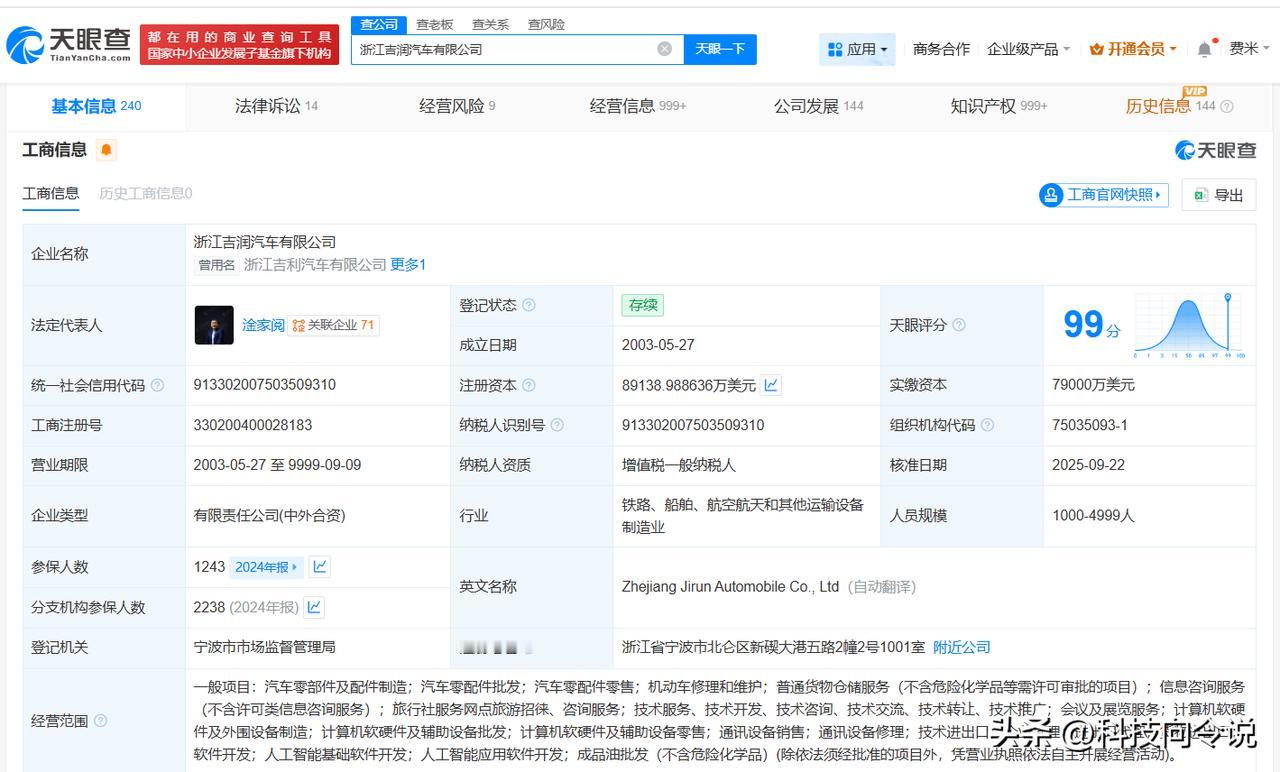 【吉润汽车增资至约8.91亿美元增幅约13%】 天眼查App显示,近日,浙江吉