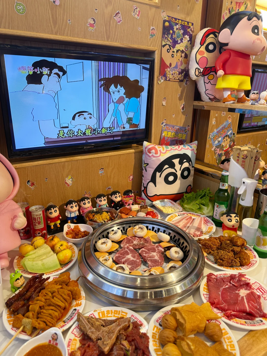 满店蜡笔小新手办+动漫主题桌,拍照秒出片,i人一人食、闺蜜聚都超nice,关键工作日89r就能实现烤肉自由!这谁能拒绝!