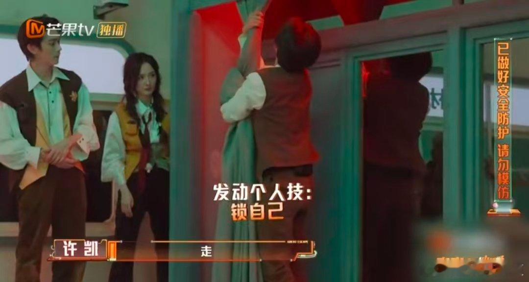 有张宥浩在你就安心吧密室大逃脱窗帘滑行环节超惊险,二话不说先上场探路,稳稳通