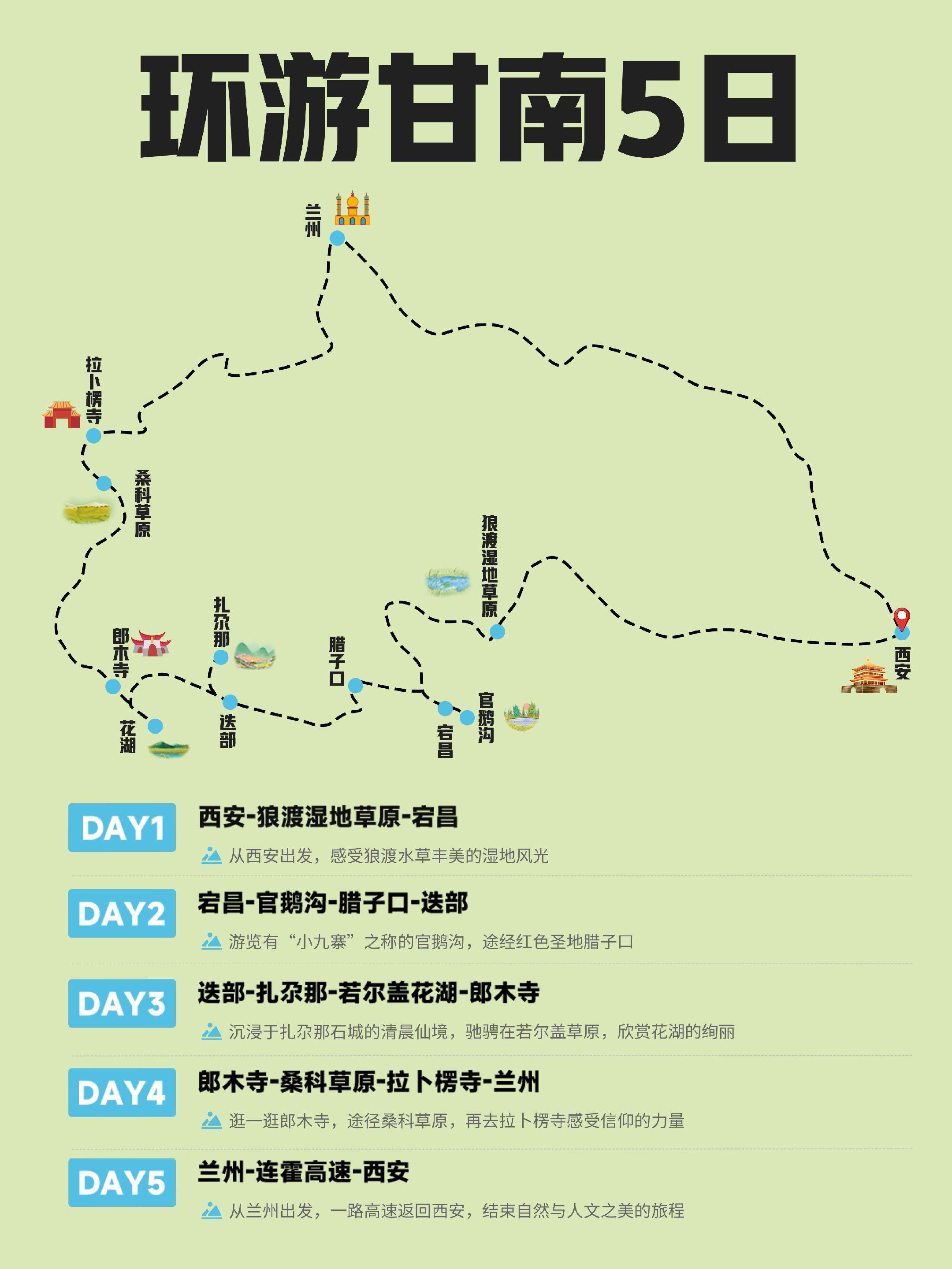 西安出发5天玩转甘南💰1K+的藏地秘境。🚌国庆西安→甘南5日游!躺平玩转藏地秋色。拒绝买票焦虑+拒绝自驾疲惫=大巴躺玩yyds✨」从西安出发,一路向西北行进,景观变化层次分明。可以一口气串联陕西、甘肃、四川三省精华。
