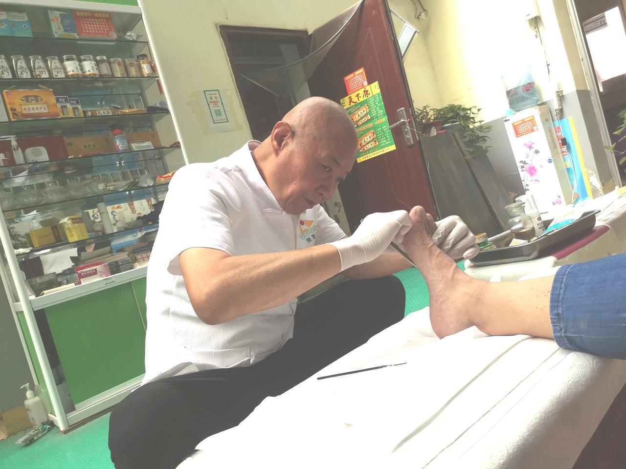 脚上雕花的修脚师李宝明 大西北网讯:记者王志俭(穿石)文图 兰州小西湖中医经