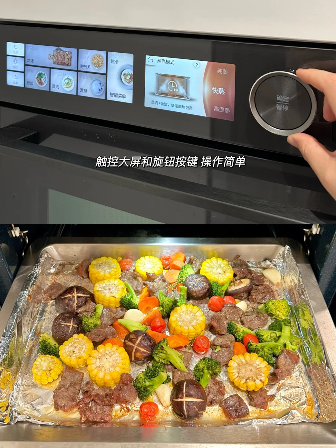 机器也很好操作👍,双彩全域大屏操控,操作起来像手机一样顺滑,自带100多道菜谱,不管是我这种厨房小白还是我爸妈这样的老人👵都能轻松使用,再也不用对着说明书挨个按键了~
