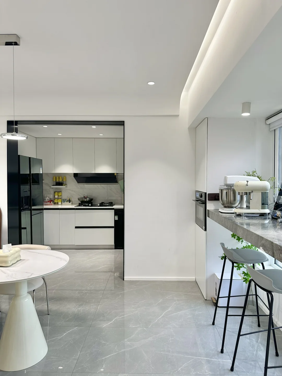 除了客厅阳台打通显亮堂之外,装修了一台嵌入式微蒸烤一体机功不可没。