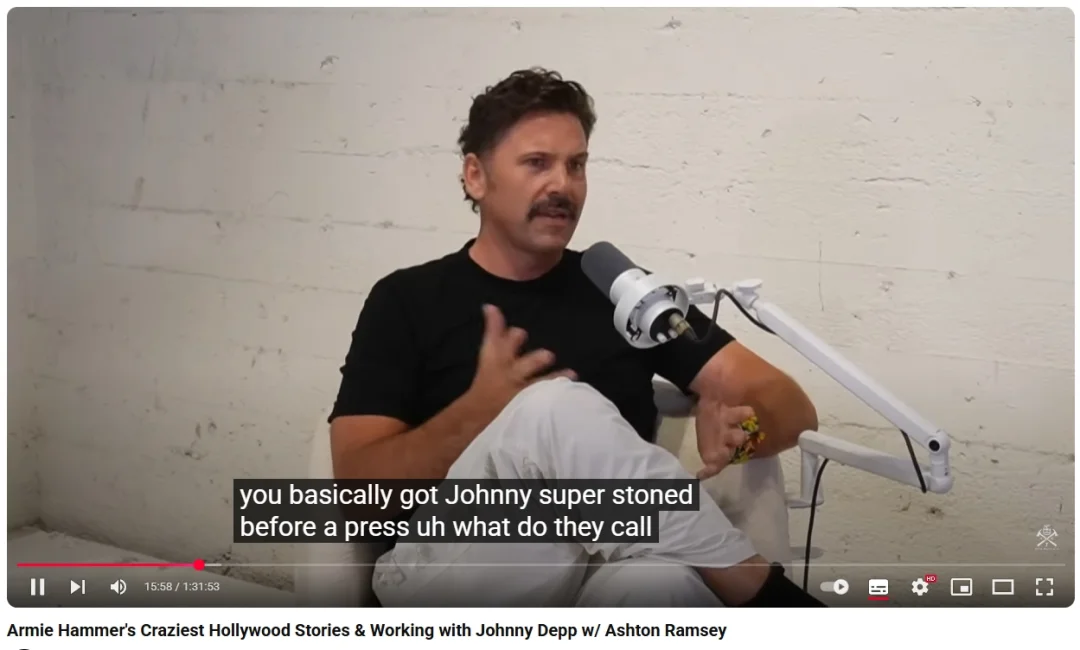 Ashton Ramsey:“你遇到的最大麻烦是,你有次在电影宣传活动前把约翰尼(德普)整得嗨到神志恍惚。”