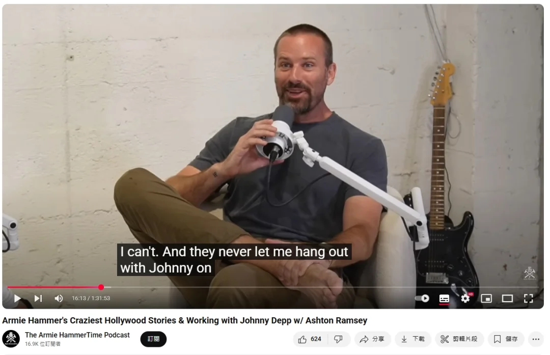 《汉尼拔》演员 艾米·汉莫(Armie Hammer)在最新一期个人播客里和好友Ashton Ramsey谈论吸大麻经历,透露有一次他和约翰尼·德普(Johnny Depp)一起吸大麻吸到迷迷糊糊了而无法进行电影宣传。