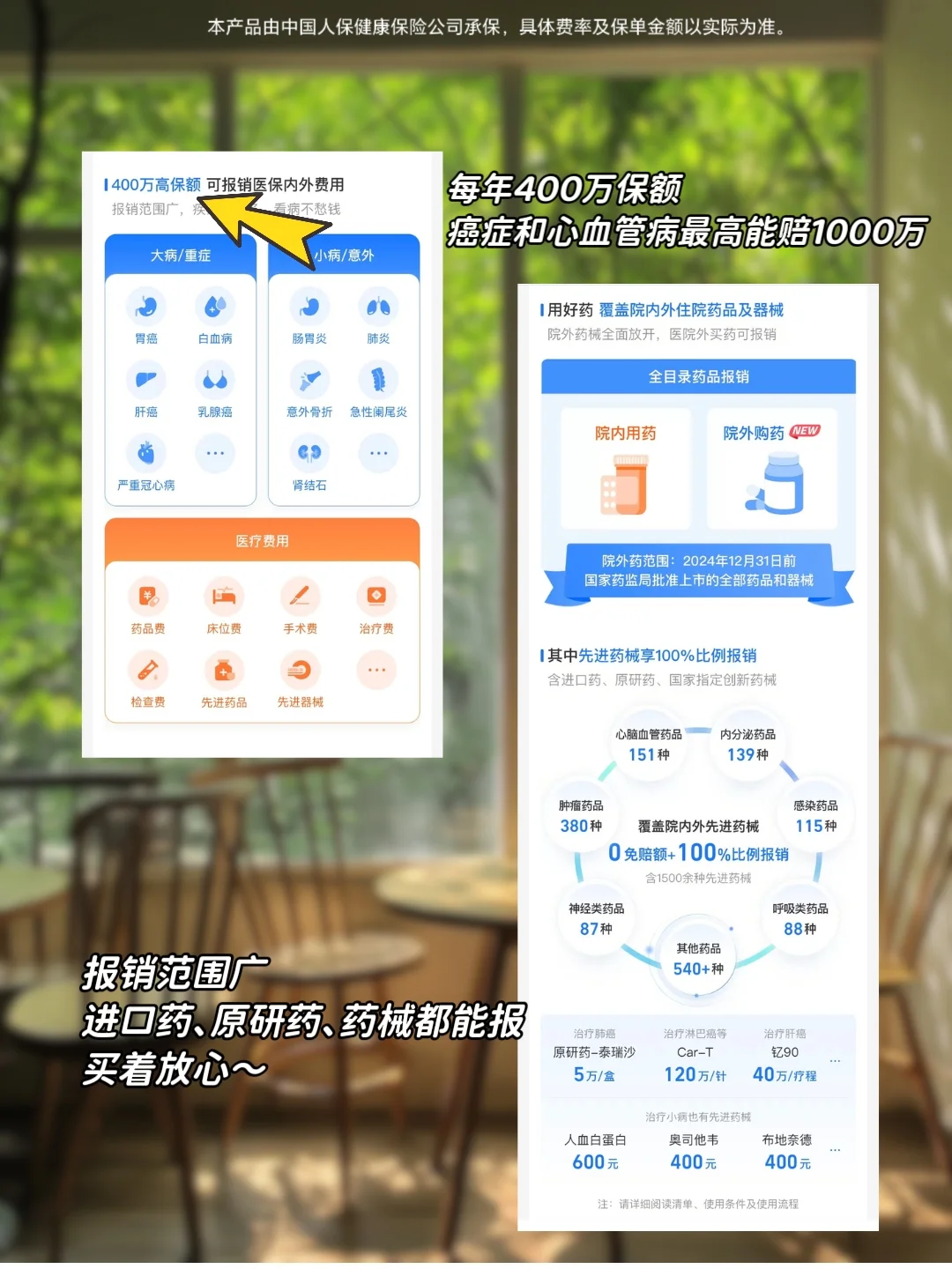 [三R]报销范围超广:责任内全部疾病享受先进药械(全目录进口药、原研药、创新药械),合计1500多种全都能100%比例报销,针对癌症和11种心血管疾病更是支持去400多家先进医院治疗报销!比如北京协和、上海瑞金之类的三甲医院特需部/VIP部就在范围内!提前锁定更权威和更好医疗保障,后半生才安心!