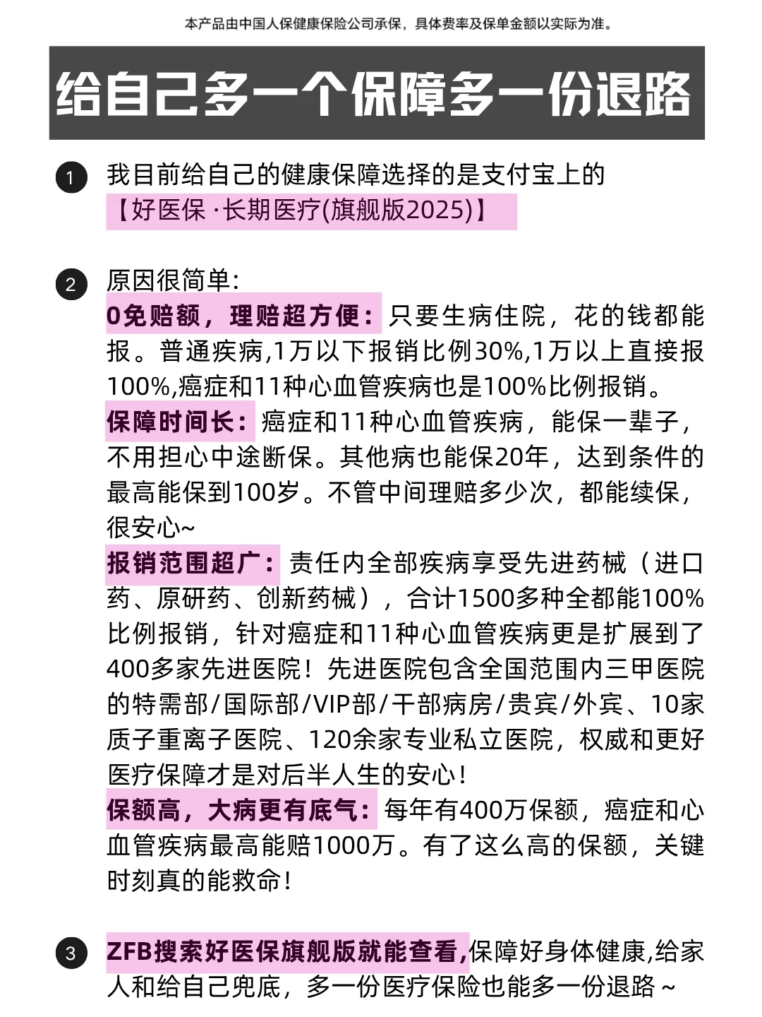 [星R]我目前给自己的健康保障选择的是支付宝上的【好医保·长期医疗(旗舰版2025)】