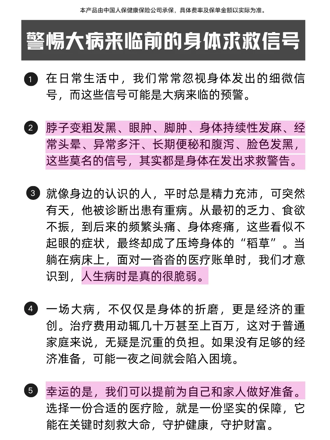 [扶墙R]在日常生活中,我们常常忽视身体发出的细微信号,而这些信号可能是大病来临的前奏。