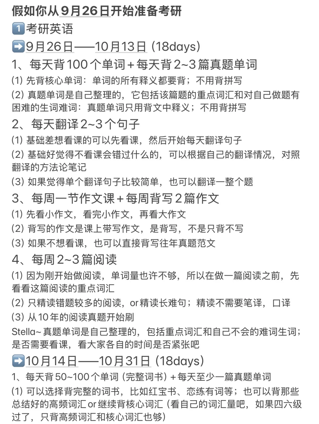 假如你从9月26日开始准备考研,接下来的85天你可以参考一下这样安排时间