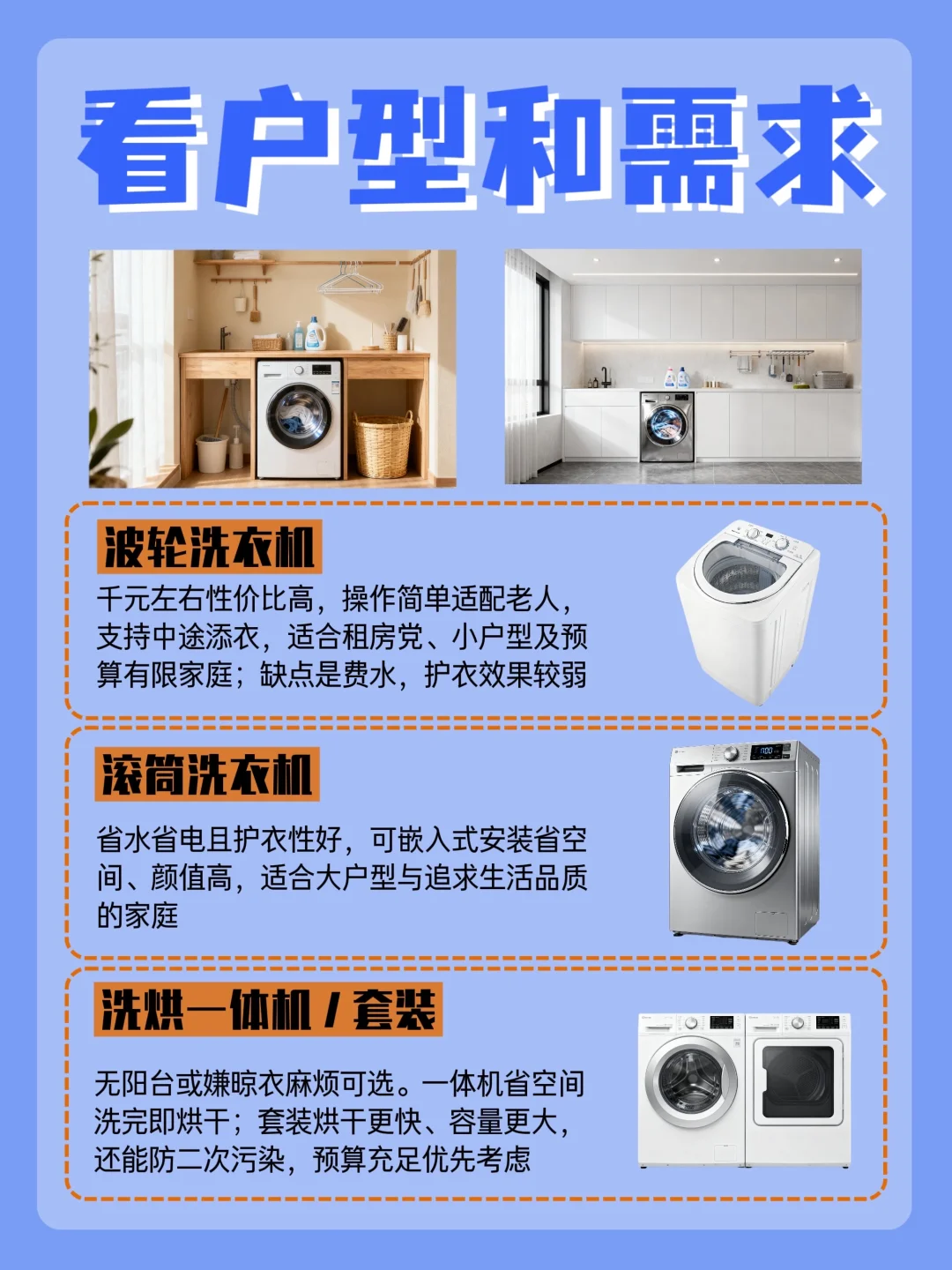 2️⃣洗衣机类型怎么选?看户型和需求!