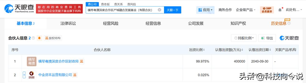 【横琴粤澳深度合作区产城融合发展基金成立出资额40.01亿】 天眼查工商信息显