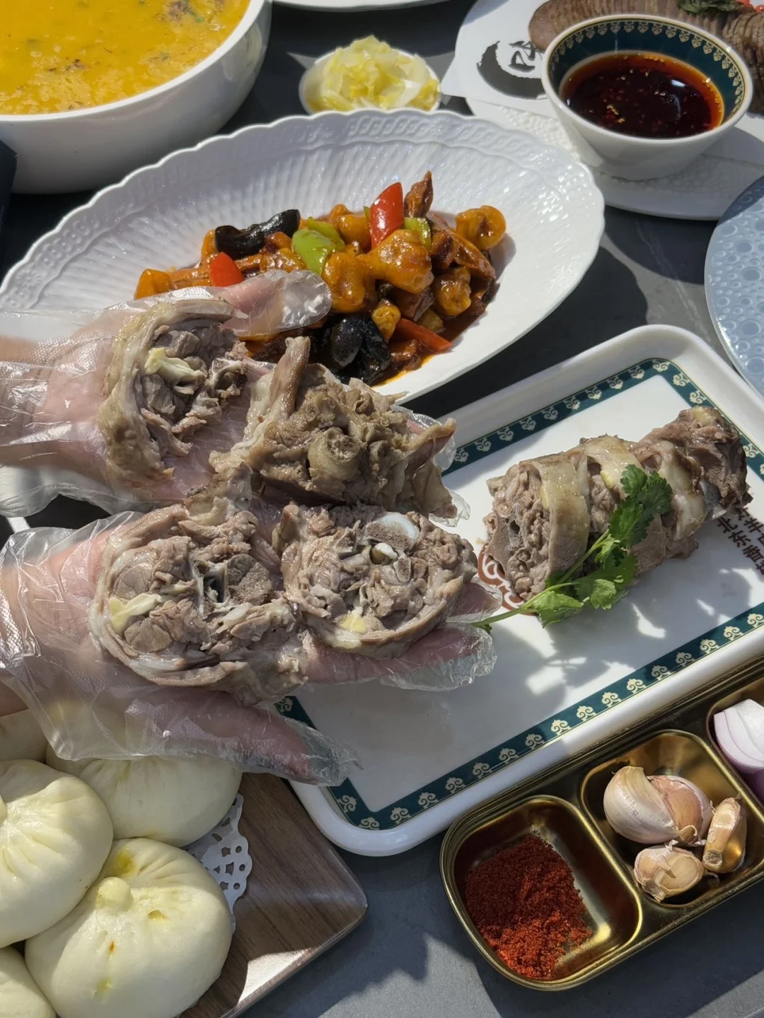 第三次来了!! 这家真的是我心中常州西北菜的天花板💥 之前吃过精品肋条已经惊为天人 今天来晚只羊脖子了—— 没想到直接封神!! 瘦而不柴!卤香彻底渗进肉缝里 连骨头嗦着都香疯!! 蘸辣椒面一口升天🌶️ 必点清单🧾: ▪️羊脖子——瘦却入味,软嫩不塞牙 ▪️羊肉串——稳定发挥,肉块大又爆汁 ▪️甜胚子——清爽解腻🍶 店里从厨师到服务员全是西北人 味道真的靠谱!!吃完立马想约下一顿!! 📍西北东香楼(常州店)