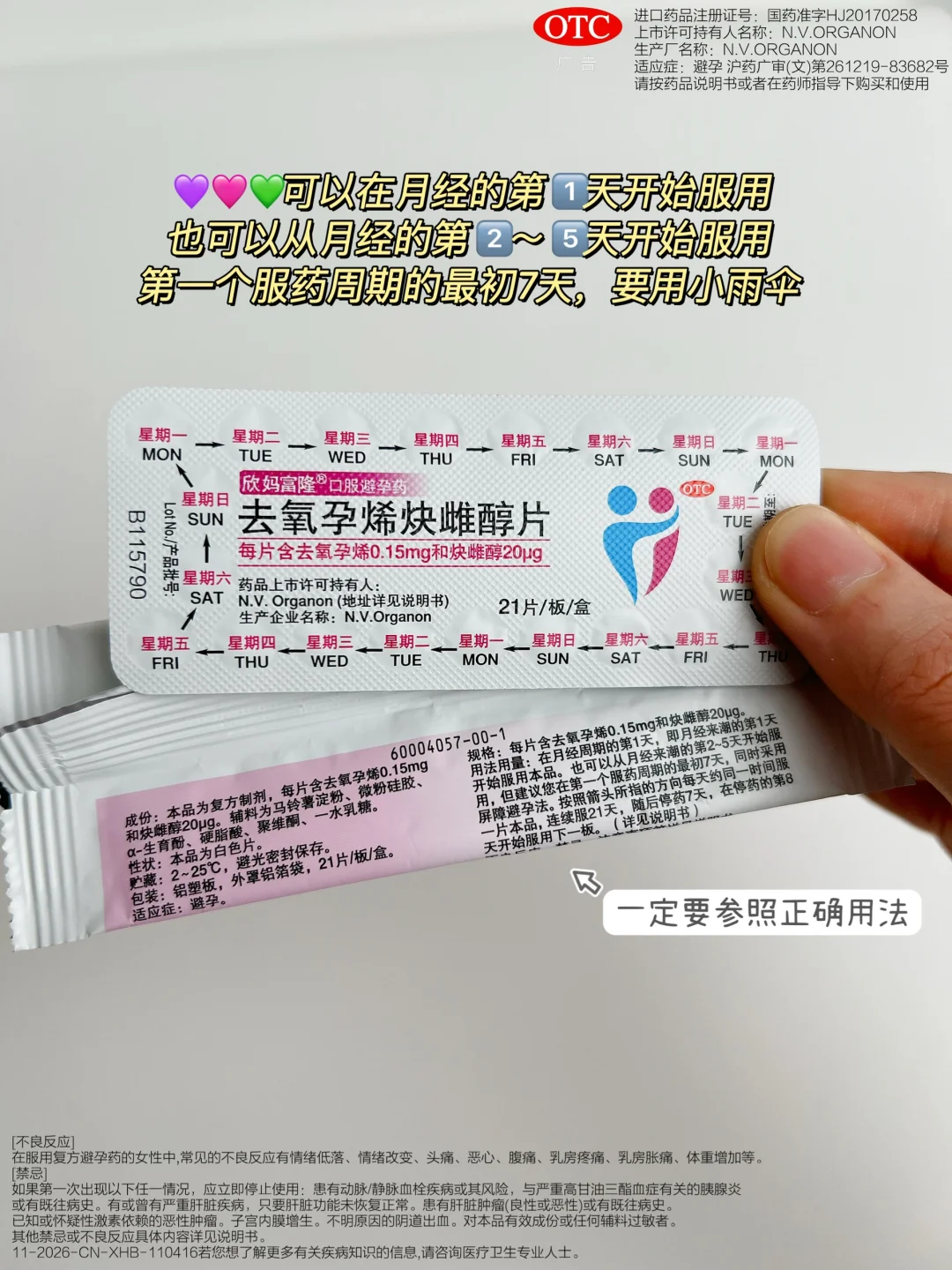 另外第一个服药周期的最初7天要同时用屏障避孕法避孕哦~