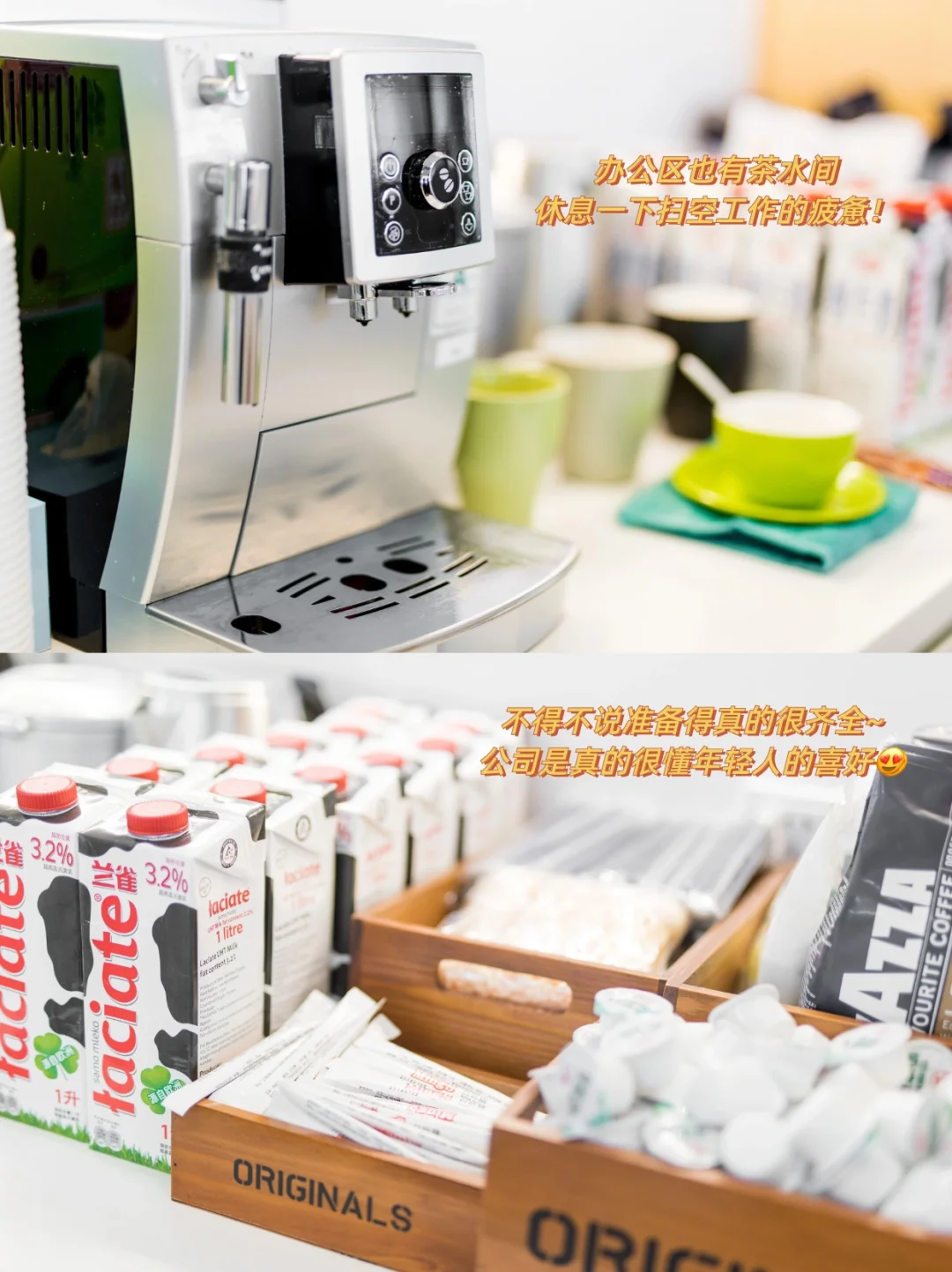 🌟公司的茶水间也是一绝,各种机器、吃的喝的超级齐全,工作累了来休息一下,一下子就回血了