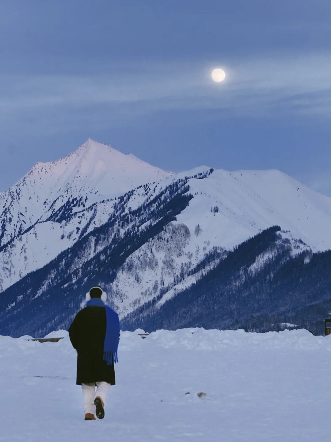 蓝调时刻绝美 还能拍到雪山悬月