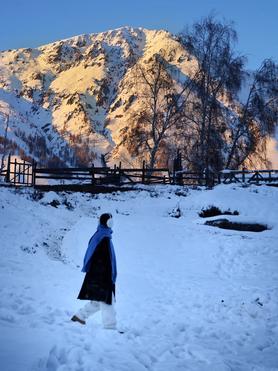 ✔️保暖装备:加厚羽绒服+防水雪地靴+耳罩