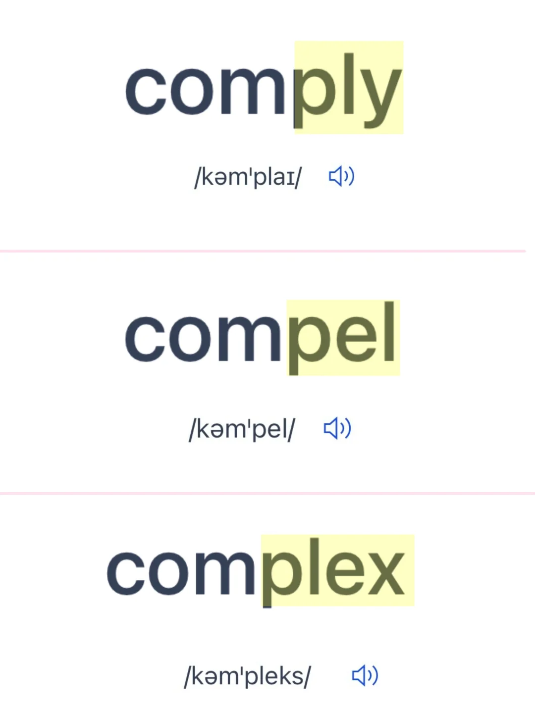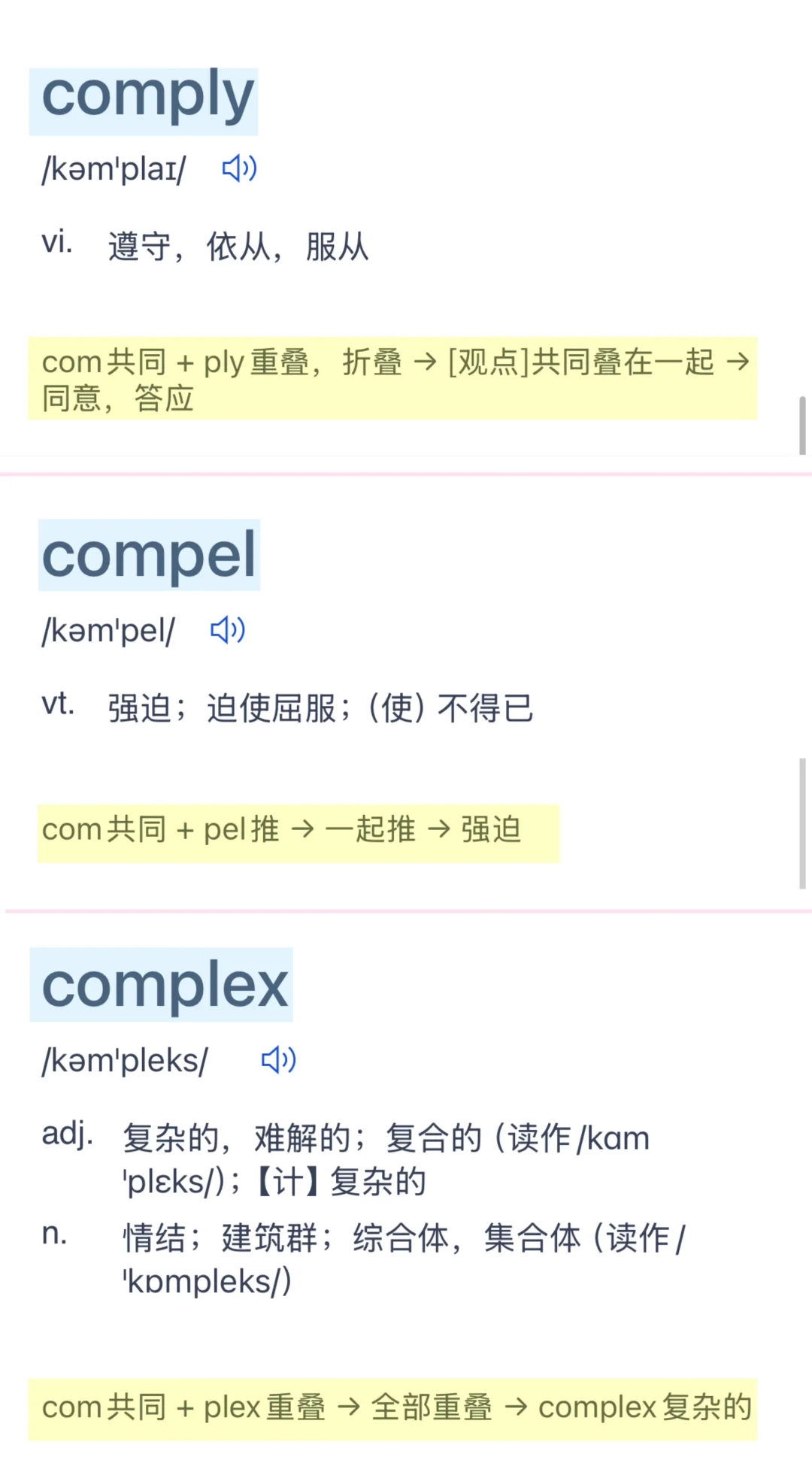 [黄色心形R] com强调 + ply充满—comply 遵从