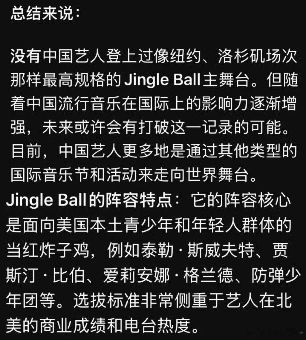 王嘉尔国际音乐版图再加一 王嘉尔的国际舞台又添重磅!官宣加盟JingleBall音乐节洛杉矶和芝加哥两站,成为首位华人solo嘉宾,这舞台可是霉霉、Dua Lipa等大腕的曾驻场,再忆科切拉神级退场,12月的表演太让人期待!