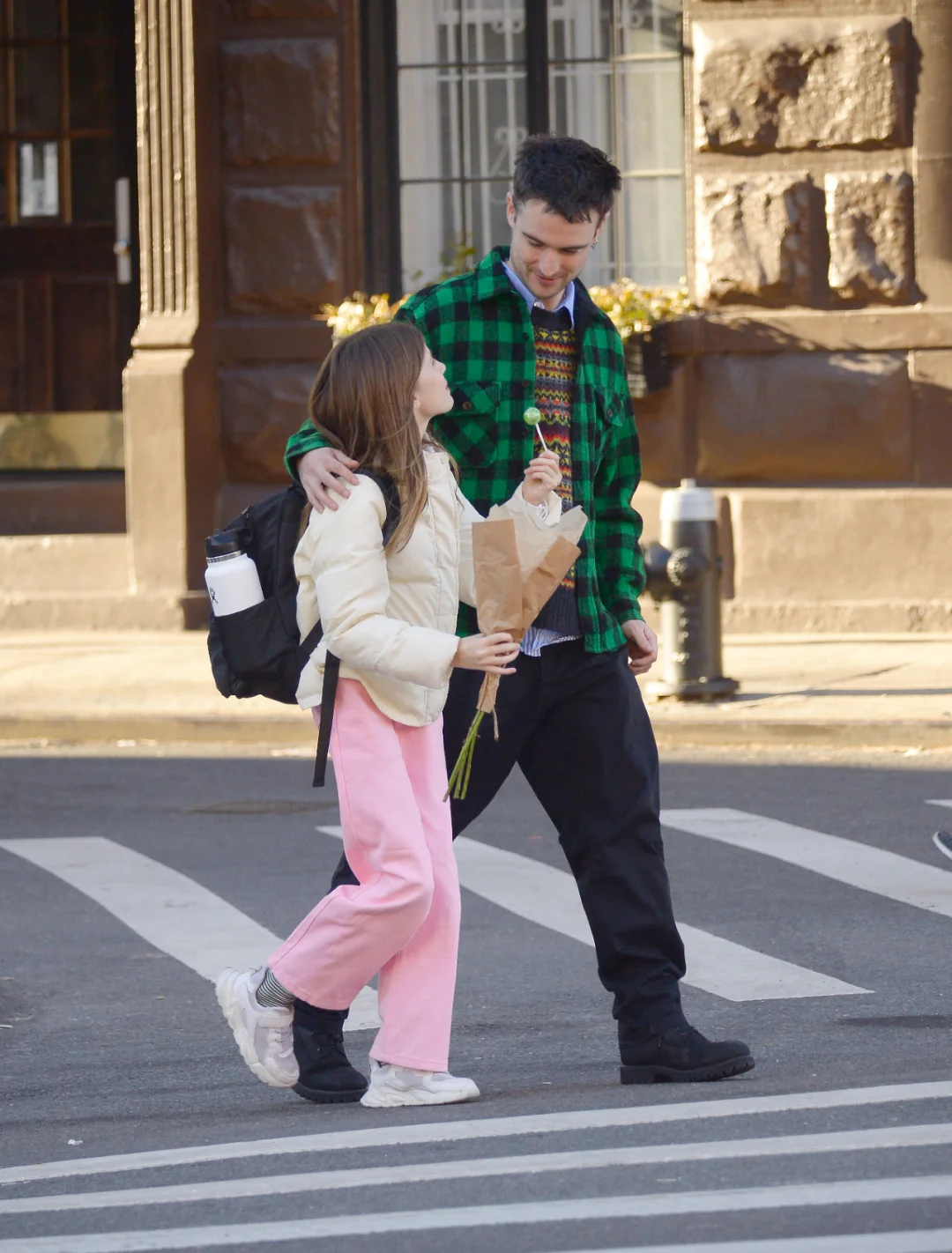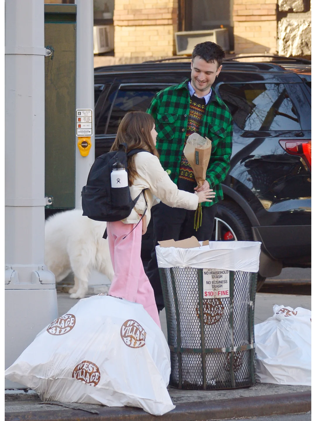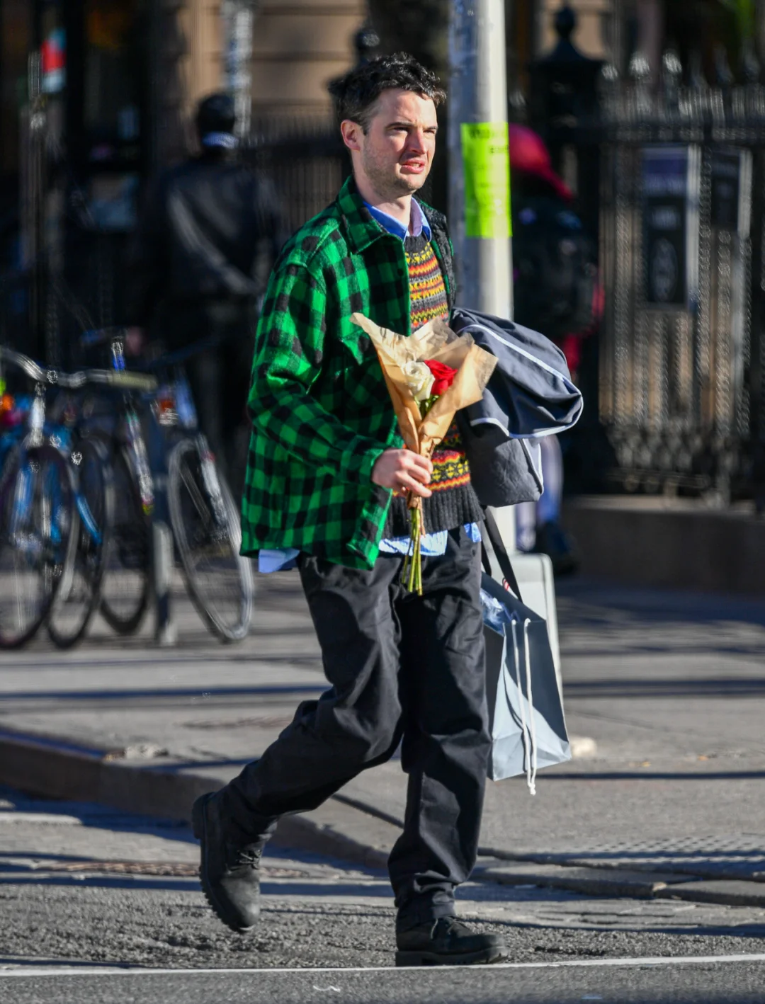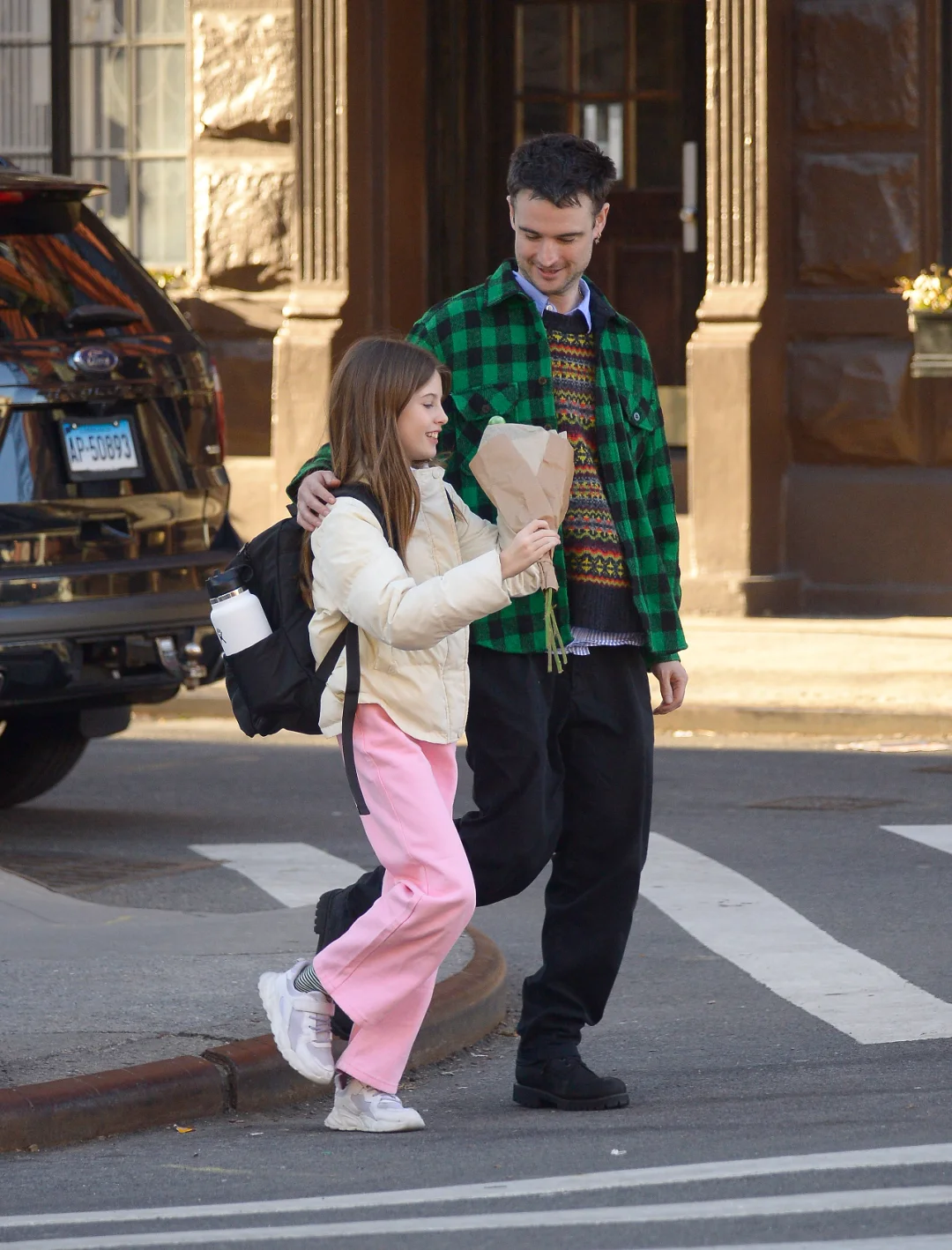 网飞大热剧集《睡魔》主演 Tom Sturridge 当地时间2月14日带女儿 Marlowe Ottoline Layng Sturridge 在纽约出门逛街,Tom Sturridge给女儿带了一束花。