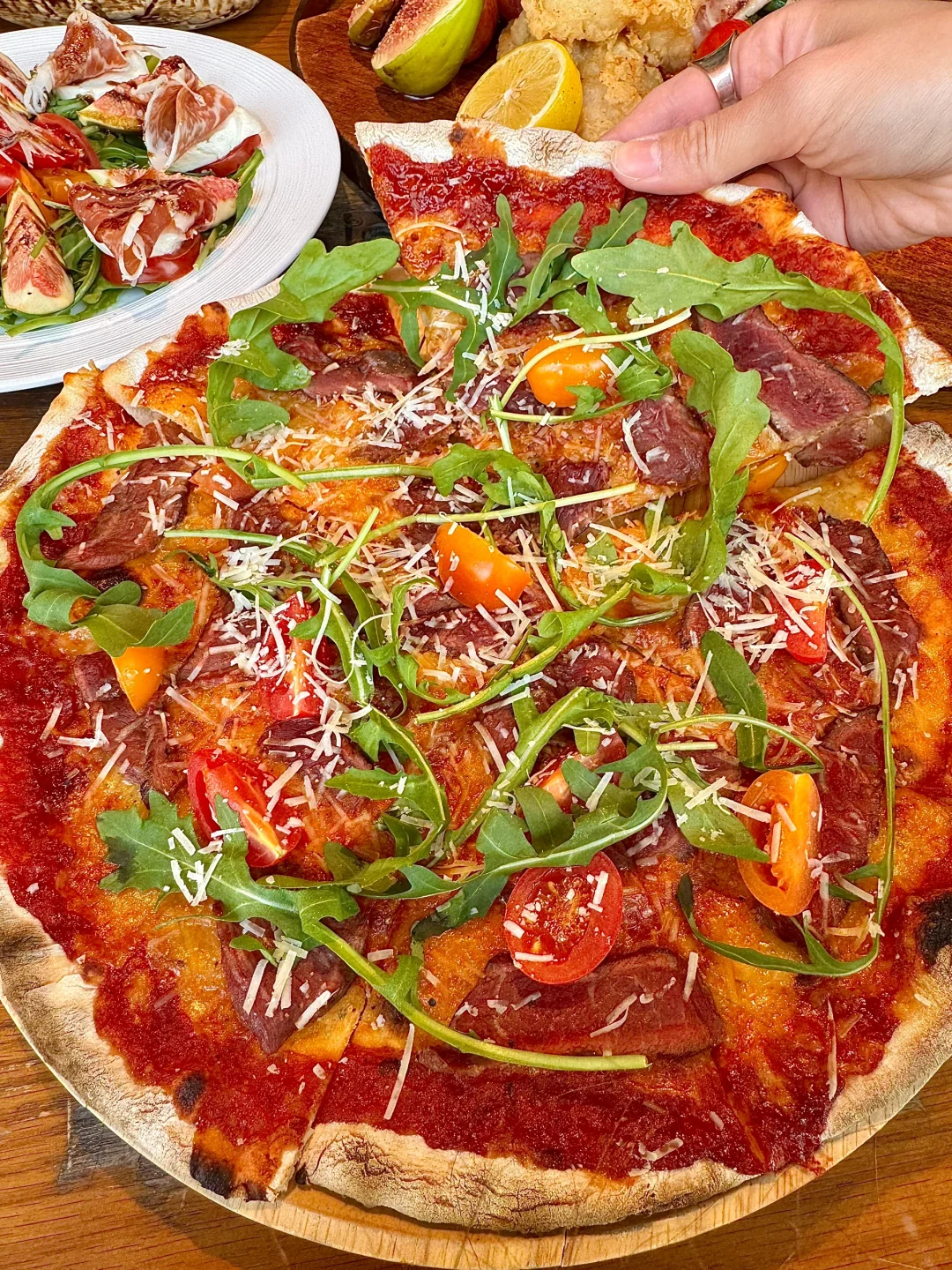 酸酸甜甜意式番茄披萨🍕上是大片牛肉~像是在牛肉里找饼!趁热一口酥脆掉渣!!