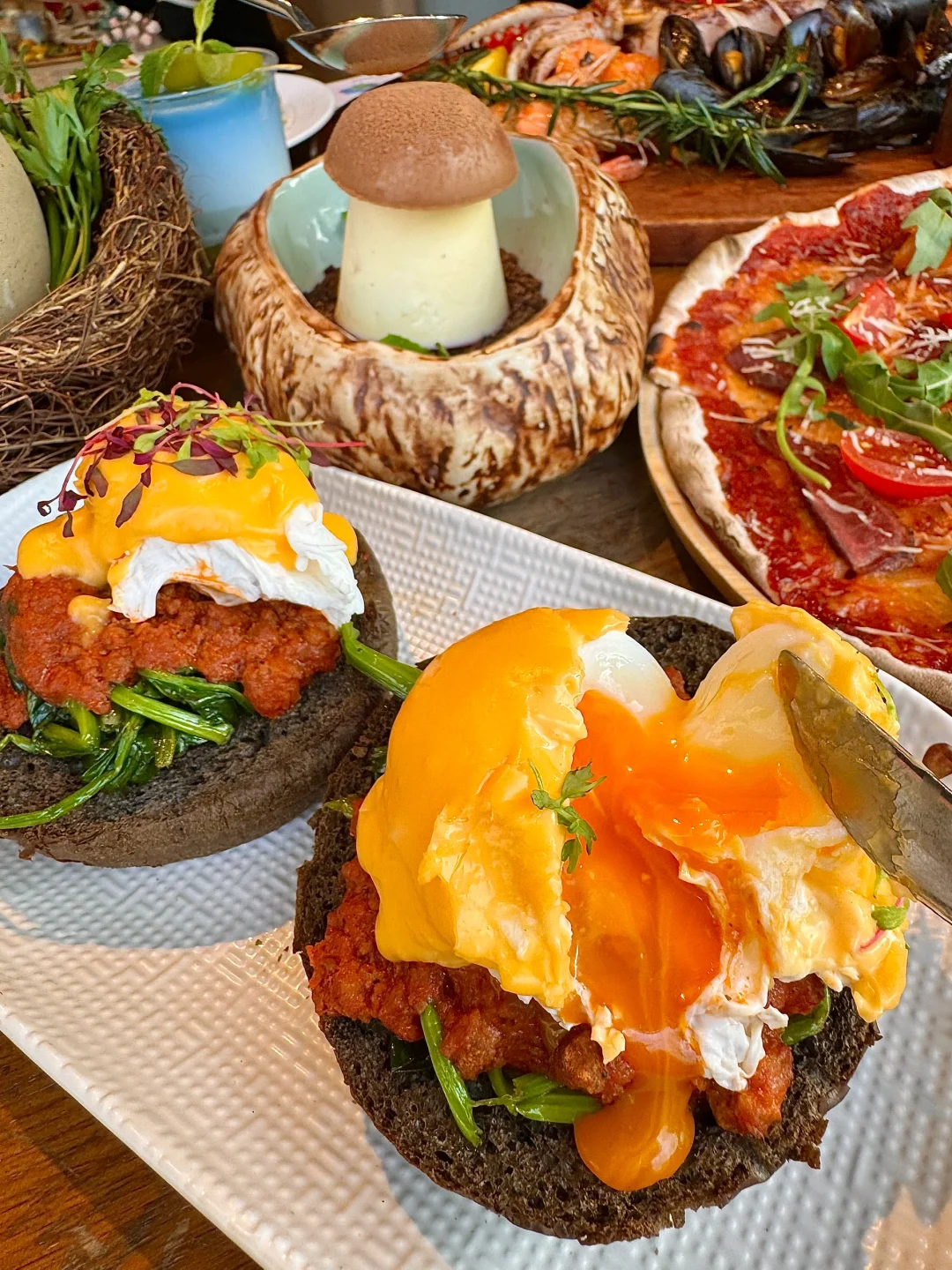 流心班尼迪克蛋🍳搭配牛肉酱和墨鱼汁面包口感层次嘎嘎丰富!!