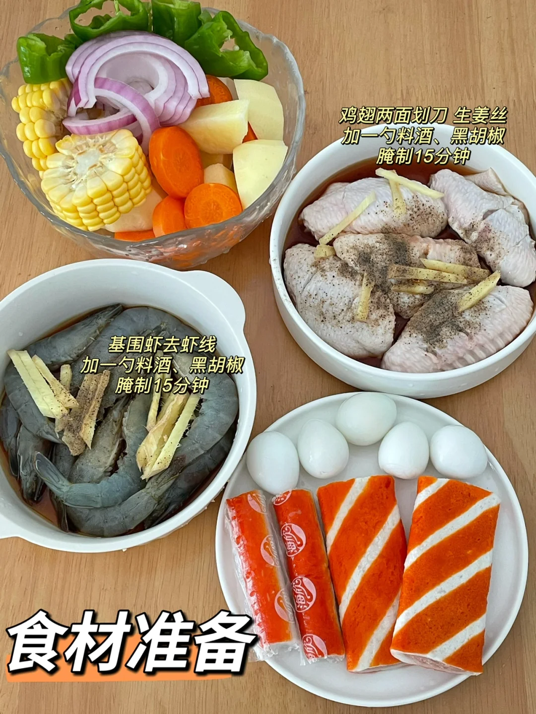 ✍️食材:鸡翅、基围虾,自己喜欢的蔬菜