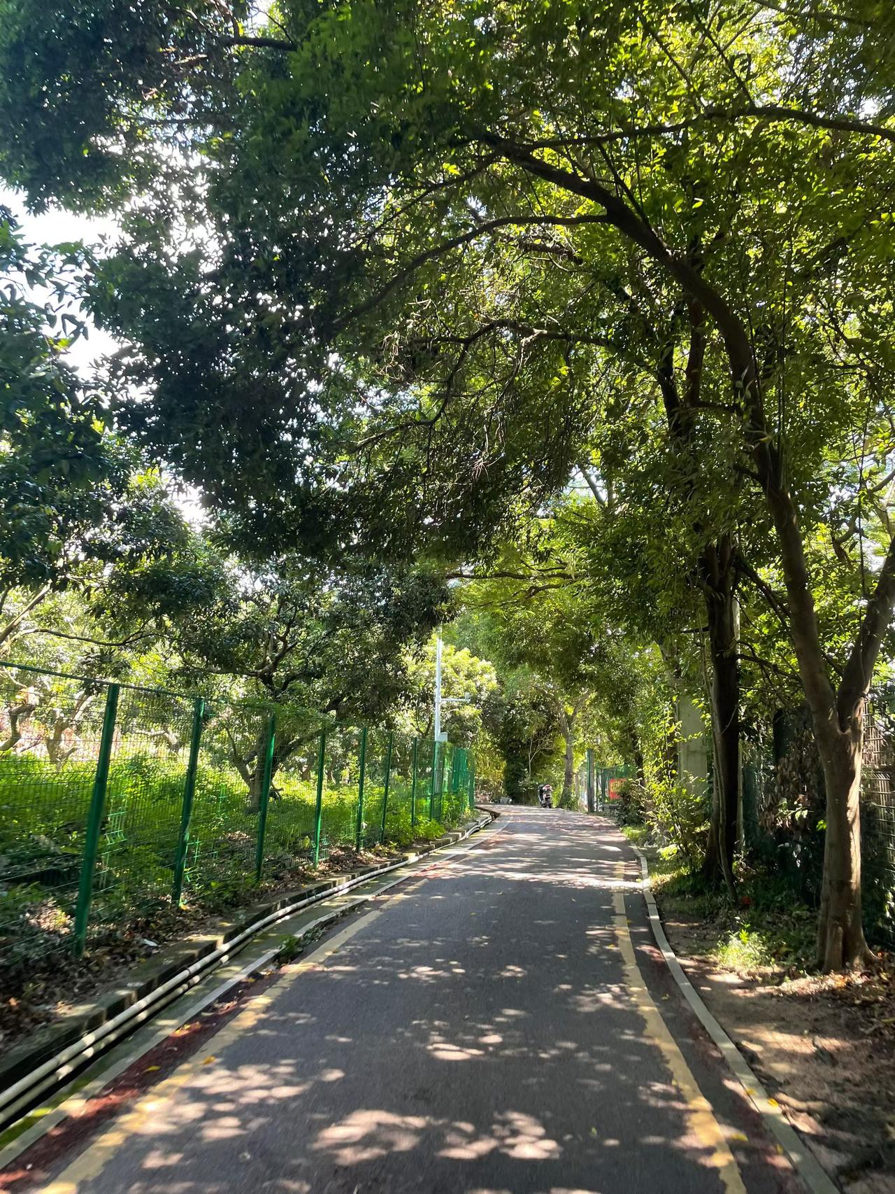 周六带娃踢球爬完福永凤凰山,和邻居也是孩子同学两家人直接骑着电动车来到附近绿道旁