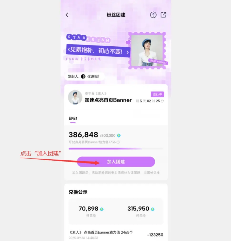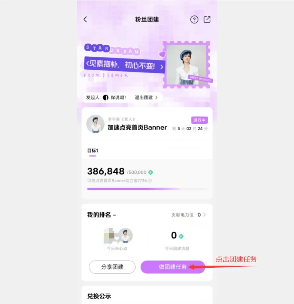 团建活动,看视频得分,免费点亮新歌《素人》目标50万,现在48万,扩散并参与一下