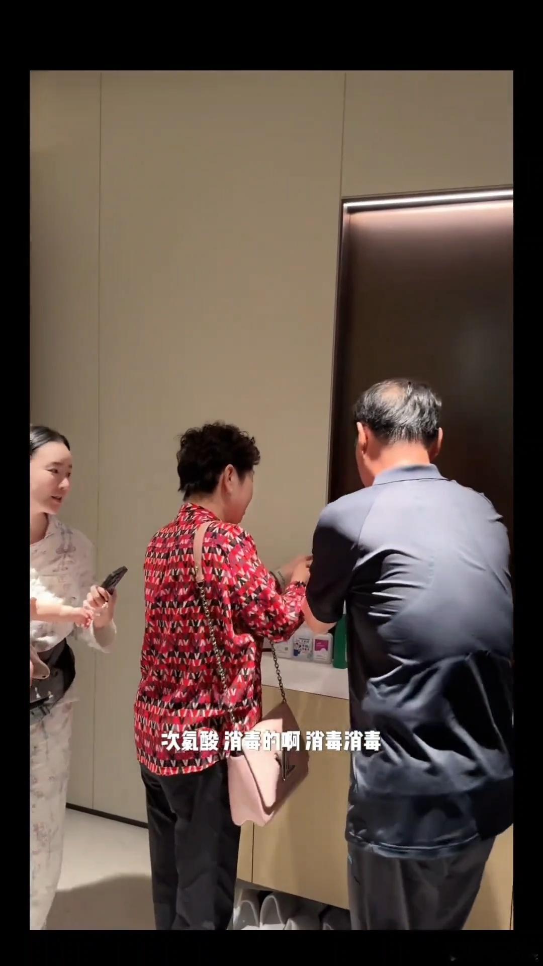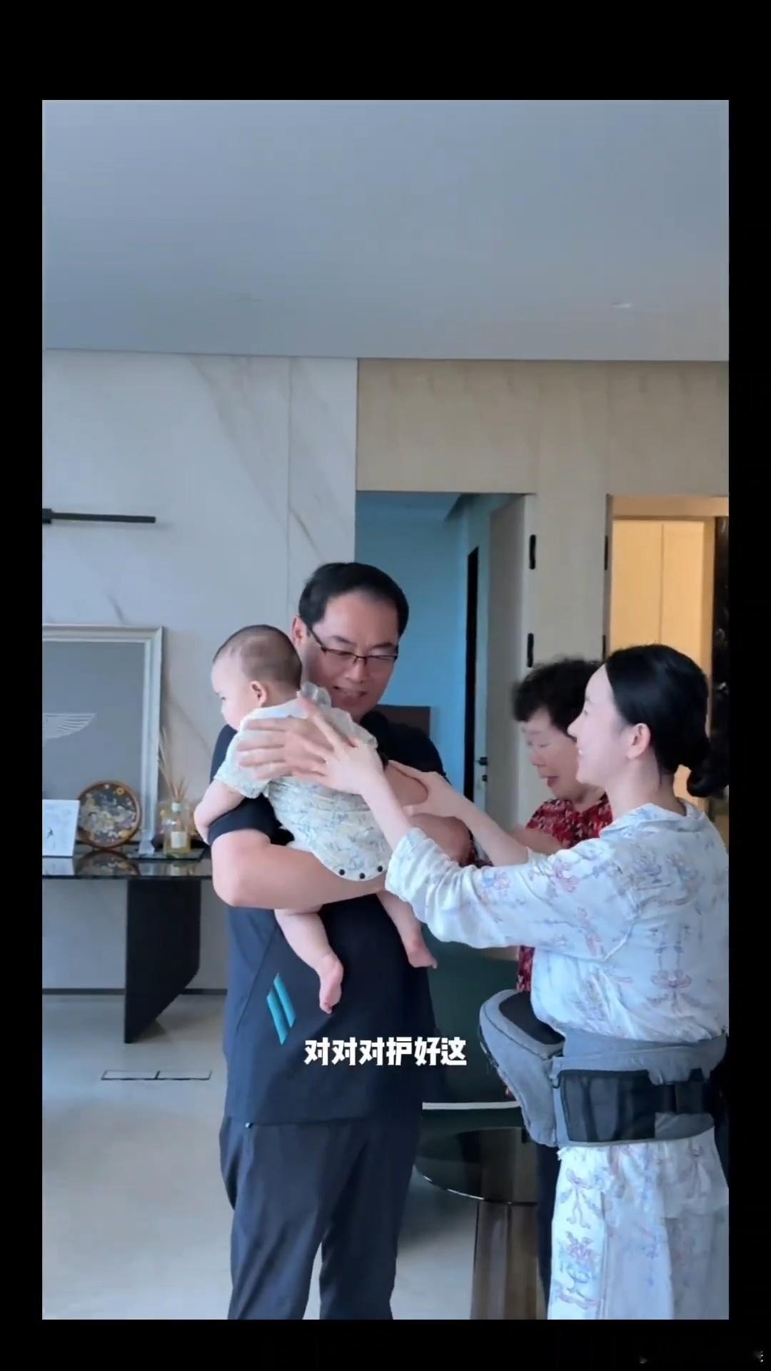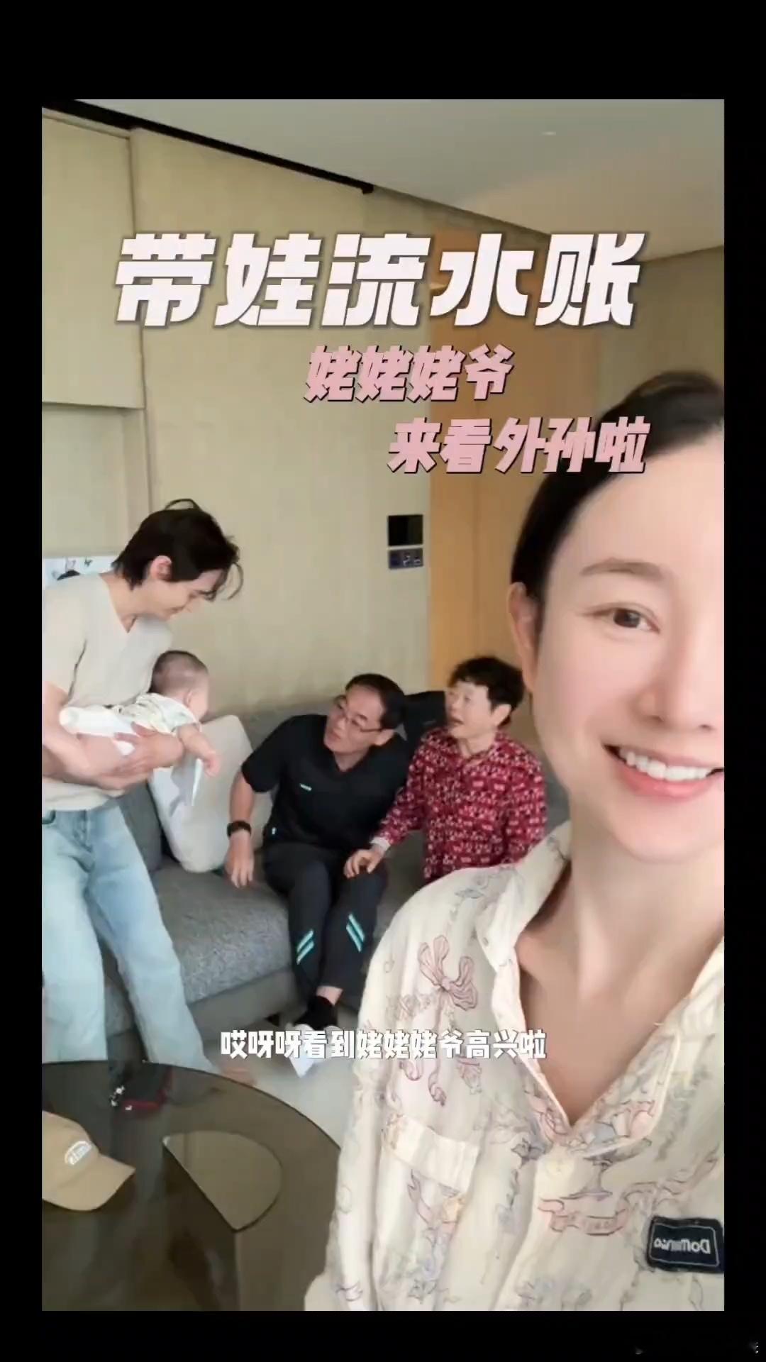 张檬父母来看外孙张檬让父母消毒后抱孩子 很正常啊