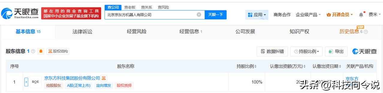 【京东方在北京成立机器人公司注册资本2亿】 天眼查App显示,近日,北京京东方
