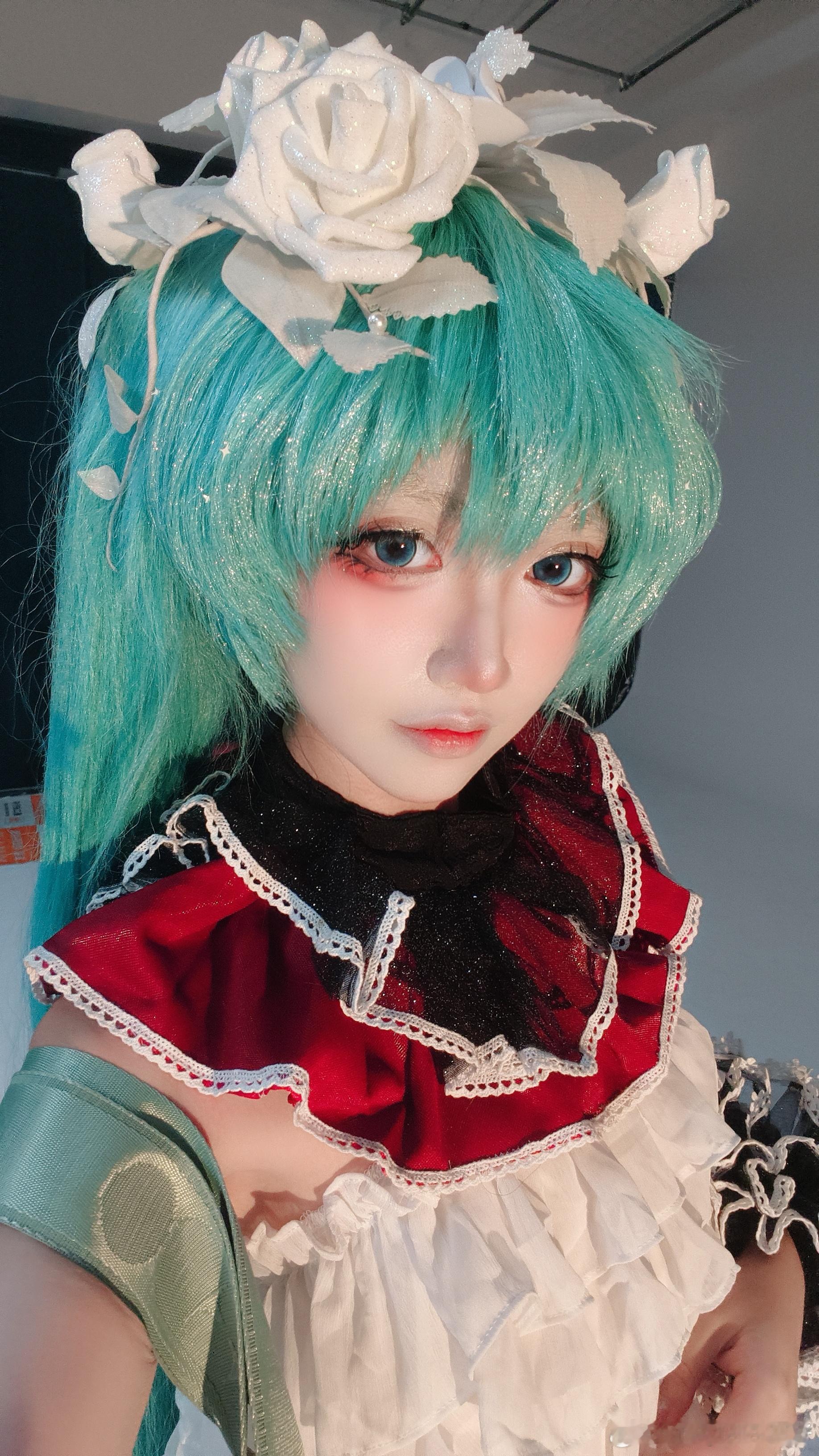 专门找做插花手艺师做了头饰,衣服虽然跟裁缝扣了细节但到手还是再改很多地方,袜子做了渐变,高跟鞋的蝴蝶结颜色是一面黑一面红,自己再搓背后蝴蝶结和垂带,倒数第三颗左右变成红色)