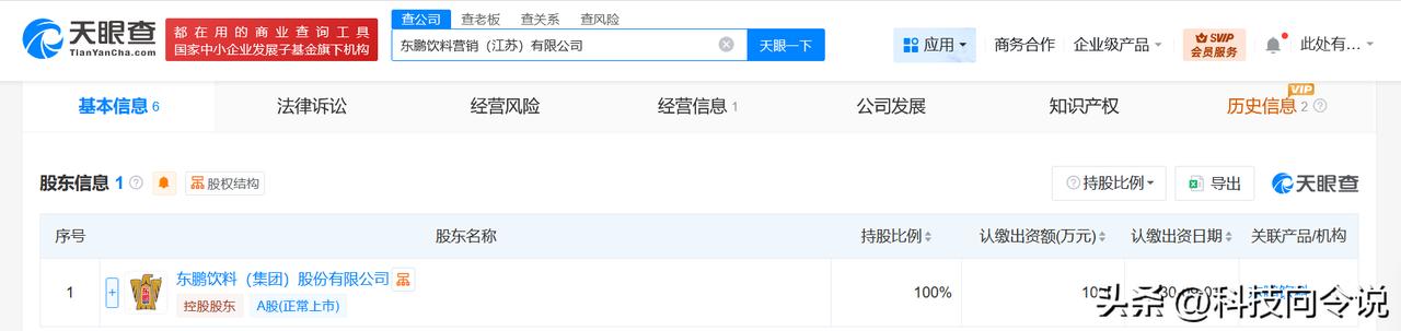 【东鹏饮料在江苏成立营销公司注册资本1000万】 天眼查工商信息显示,近日,东