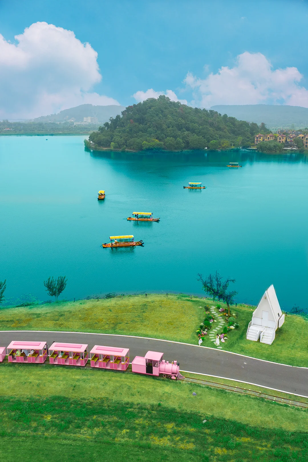 不是大理,不是秦皇岛!是武汉版小洱海,沿湖而开的粉红小火车,沿途可以看到孤独房子,还可以试试做竹筏泛舟。