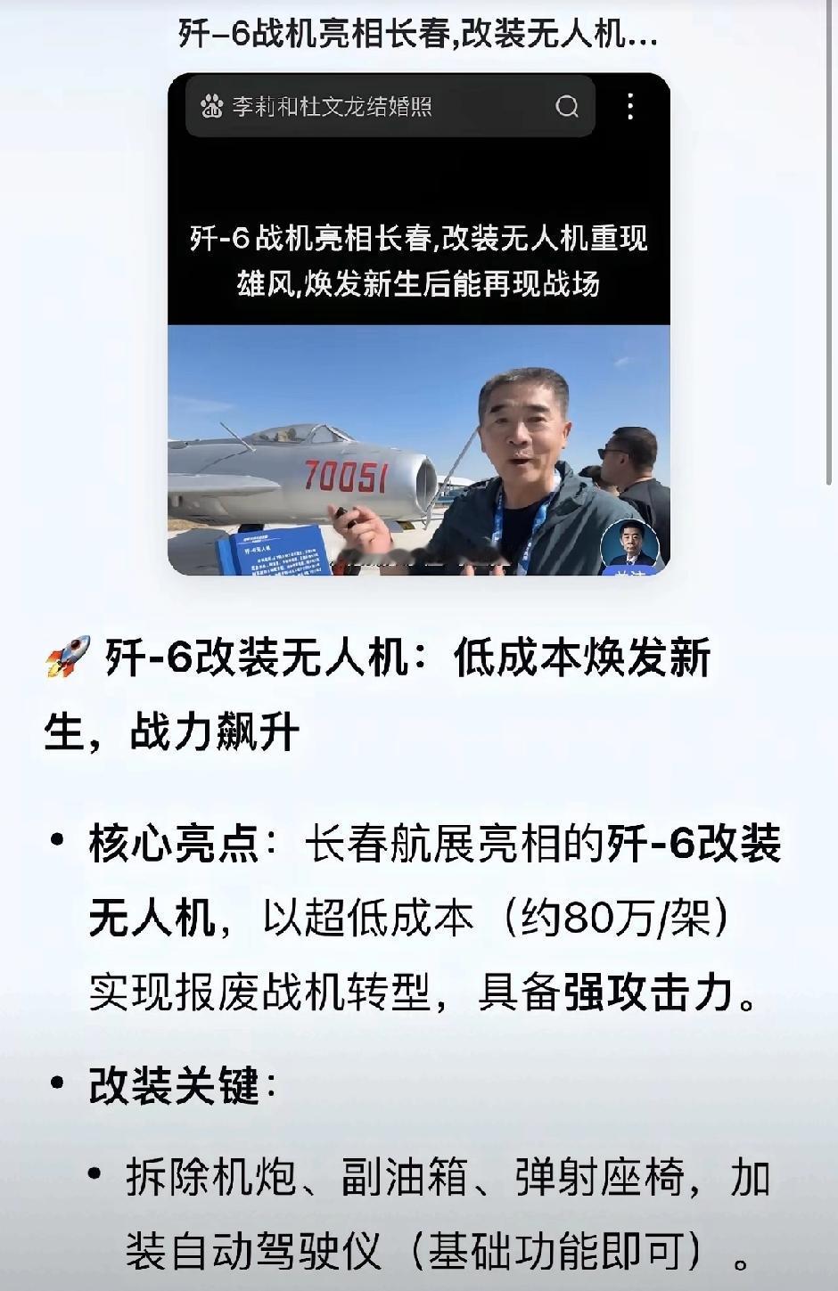近日网络流传"5000架歼6改装成无人战机"的谣言,称80万元一架,能携带成吨炸
