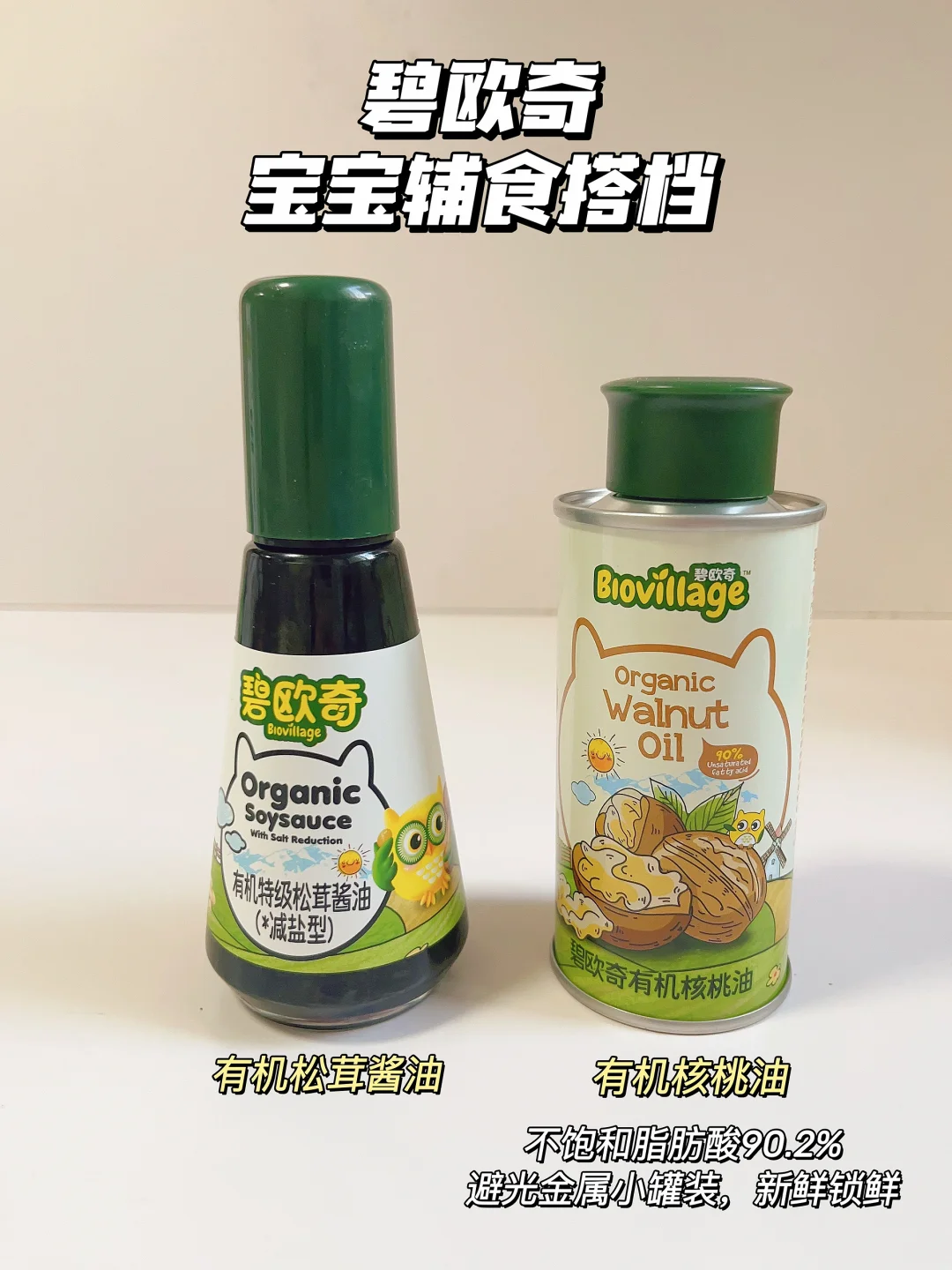 搭配上碧欧奇有机核桃油,不饱和脂肪酸含量90.2%,营养丰富,100%避光金属小罐装,快速吃完不浪费,新鲜锁鲜,采用低温冷榨工艺,油质清澈无杂质,有淡淡核桃香,宝宝特别爱吃~