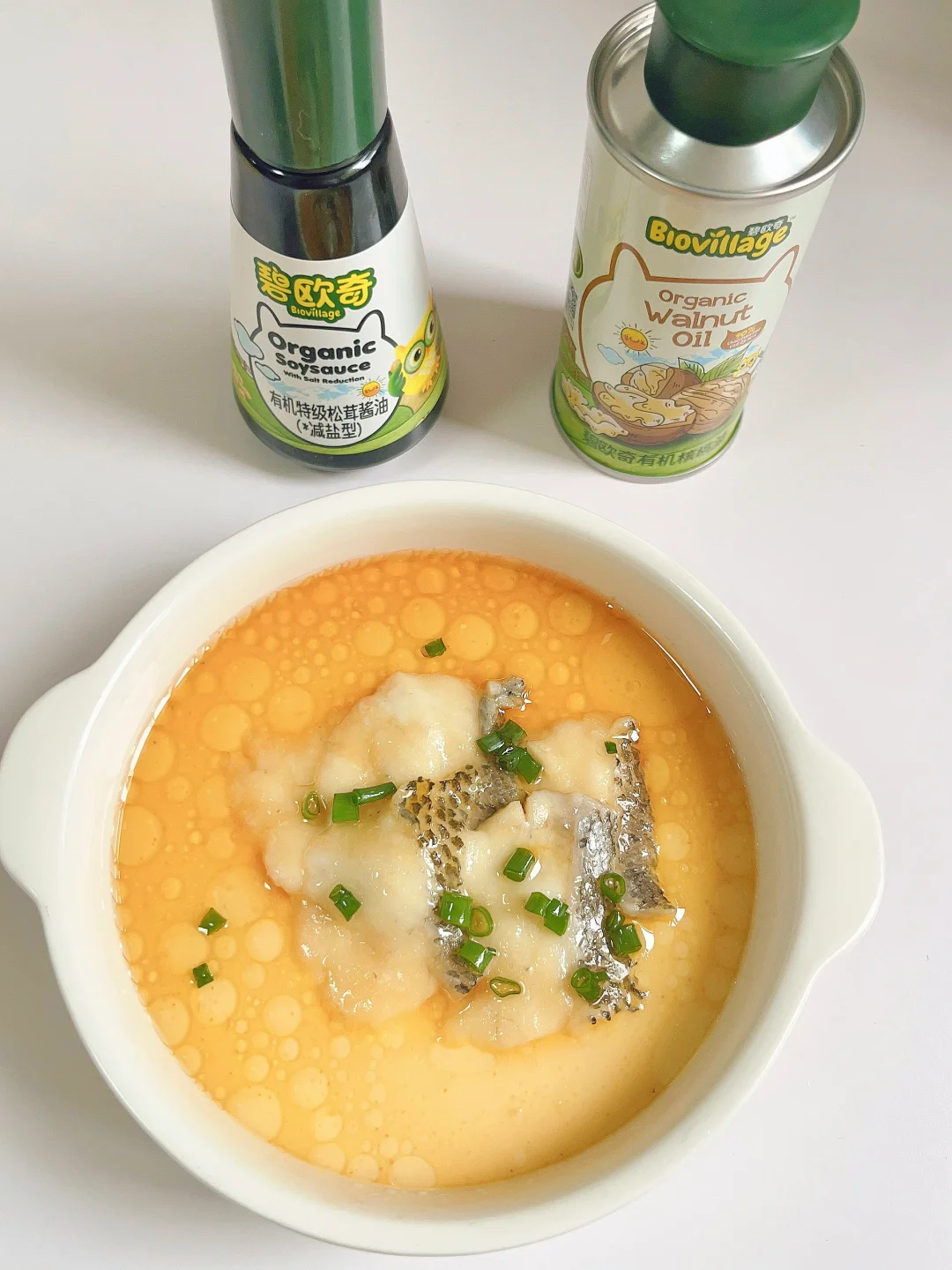 做法很简单,只要会做鸡蛋羹就可以做这道鲈鱼蒸蛋,鲈鱼这么做非常嫩滑,而且没有鱼刺,宝宝也可以放心吃,食材里面调料只加了碧欧奇的有机松茸酱油,它家酱油选用的是黑龙江非转基因有机大豆和新疆阳光有机小麦为原料,全链有机可溯源,雾化喷头设计深得我心,能精准控量,一次按压约2ml,仅0.0066g钠,特别减钠60%很适合宝宝,所以新手妈妈也完全不用担心一次性添加过多,配料干净,里面额外添加了长白山的野生松茸,口感也更加醇厚,即便食材里面只添加了酱油也可以让食物很好吃。