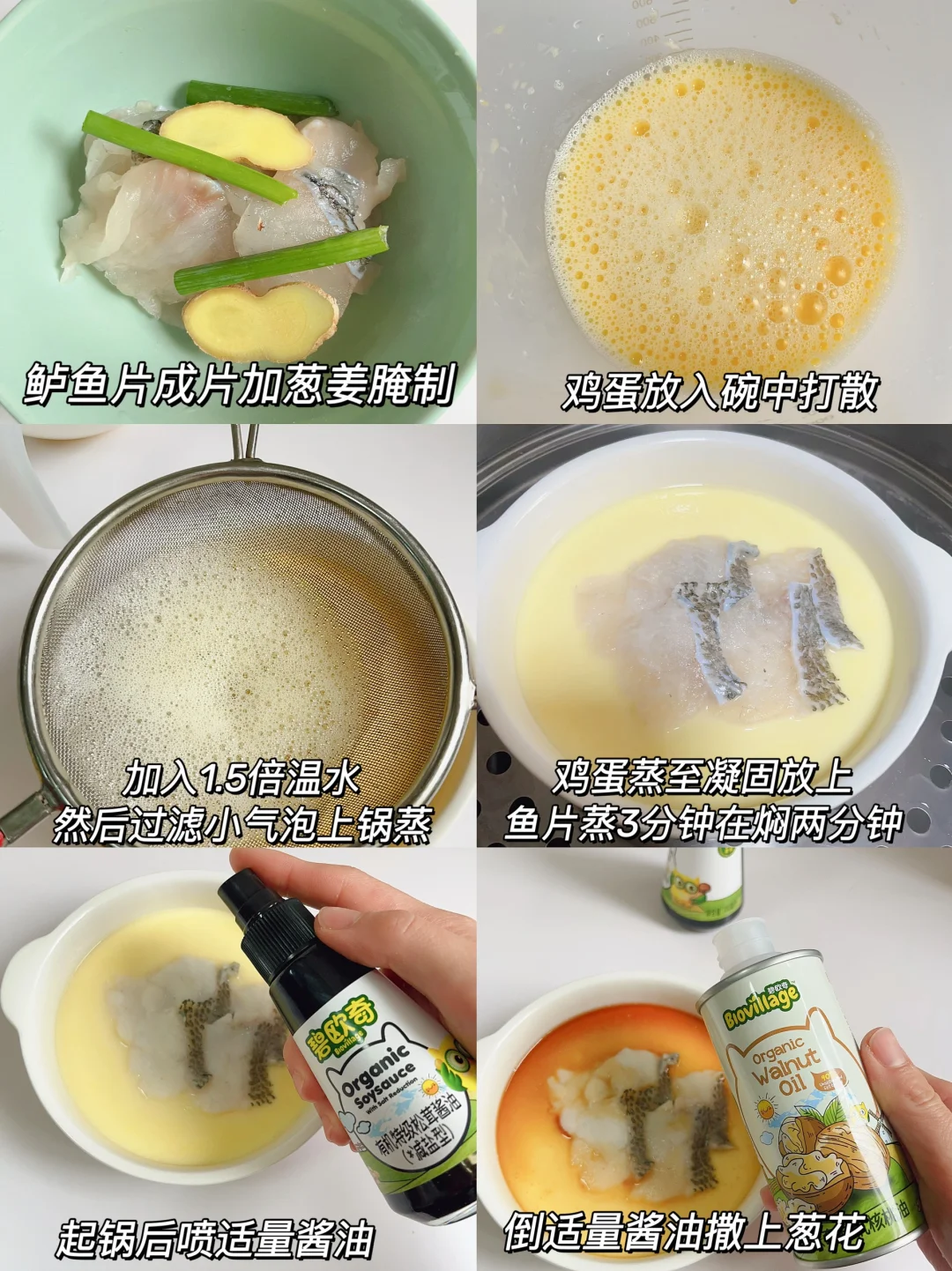 [清单R]食材:鲈鱼片 2个鸡蛋 葱姜 碧欧奇有机松茸酱油 碧欧奇有机核桃油
